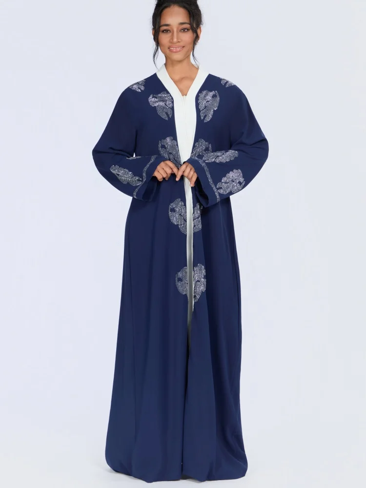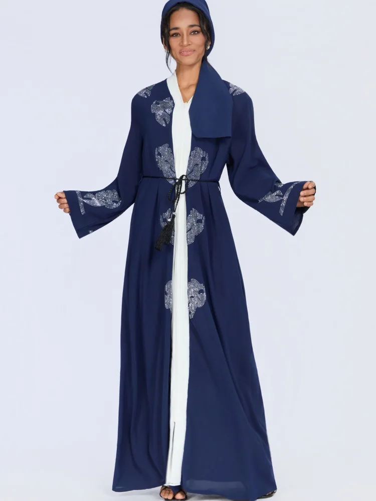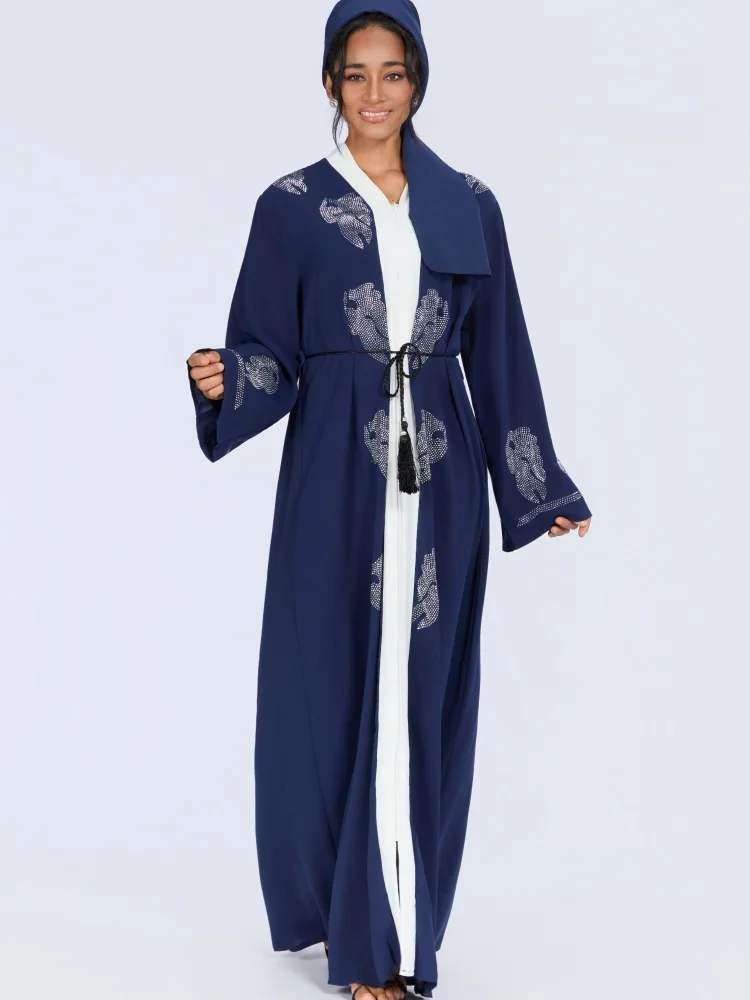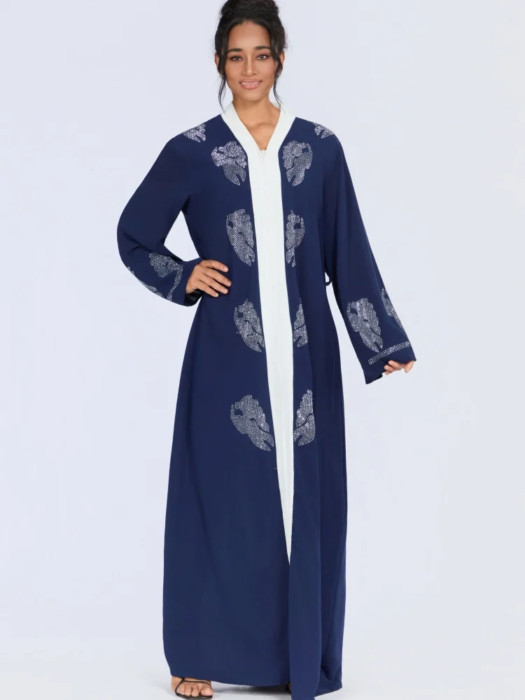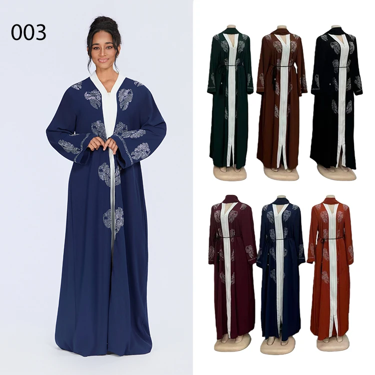 Wholesale New Fashion Elegant Women Embroidered Long Sleeve Muslim Robe V-neck Dress