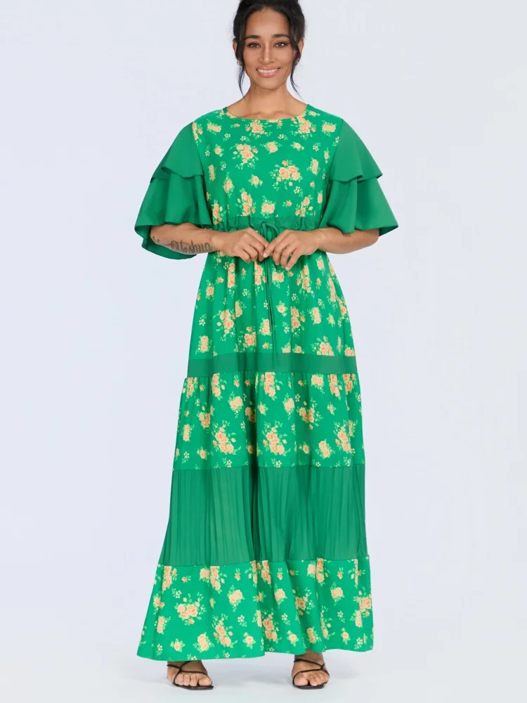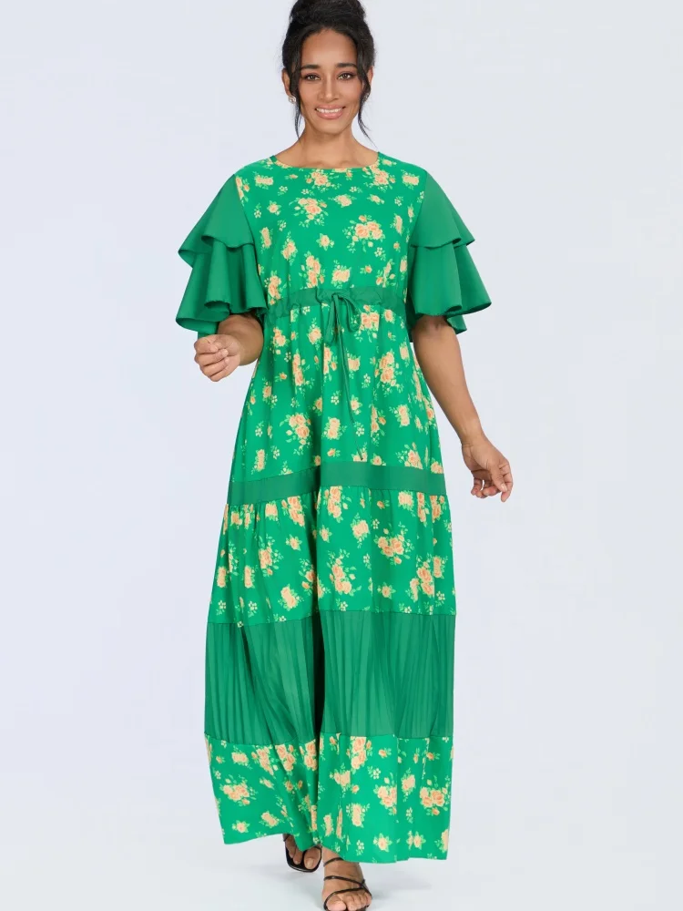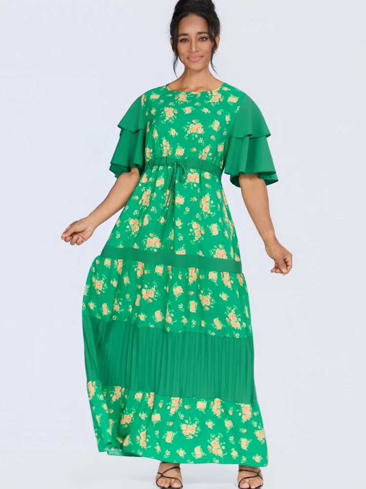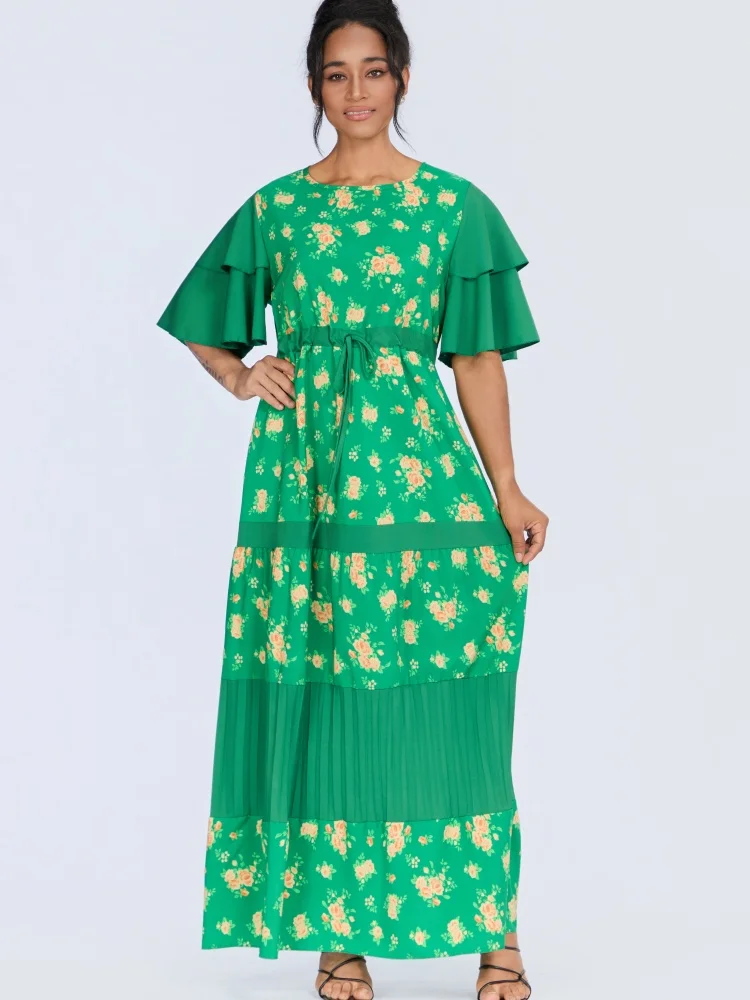 Wholesale New Spring Round Neck Casual Elegant Women Floral Print Short Sleeve Dress