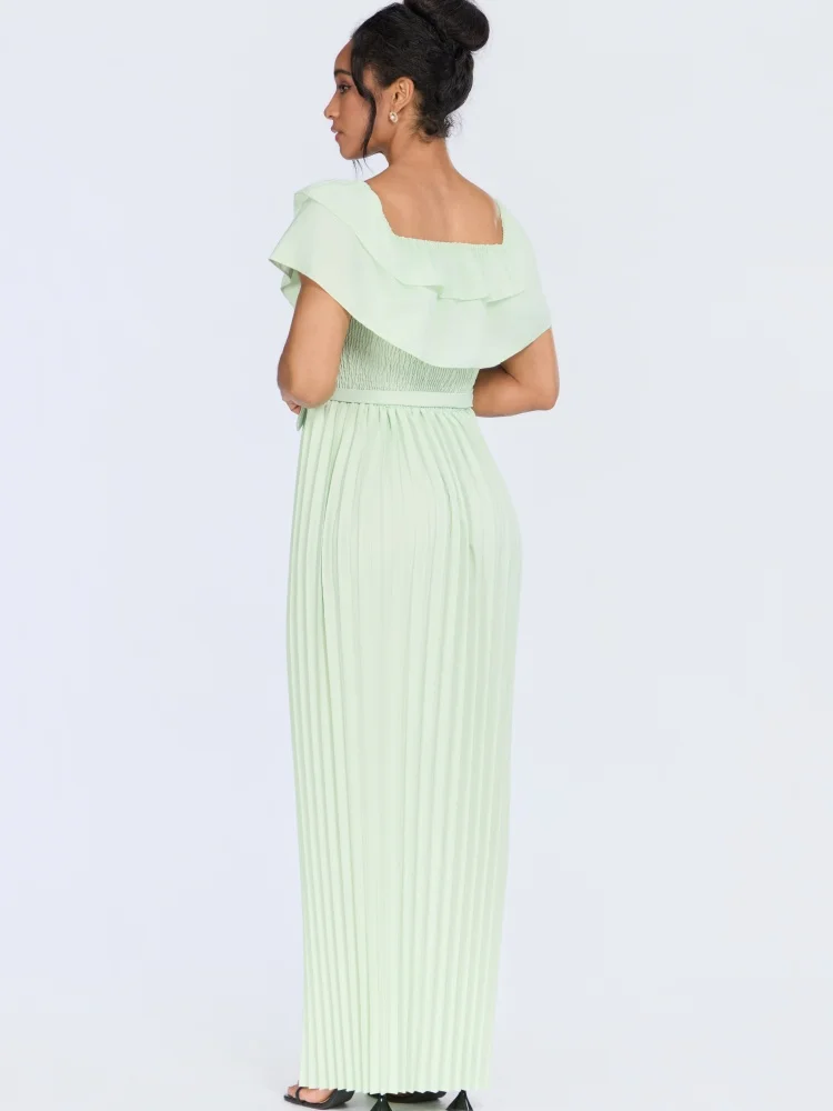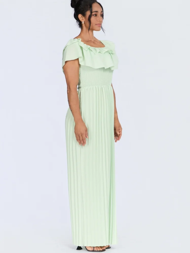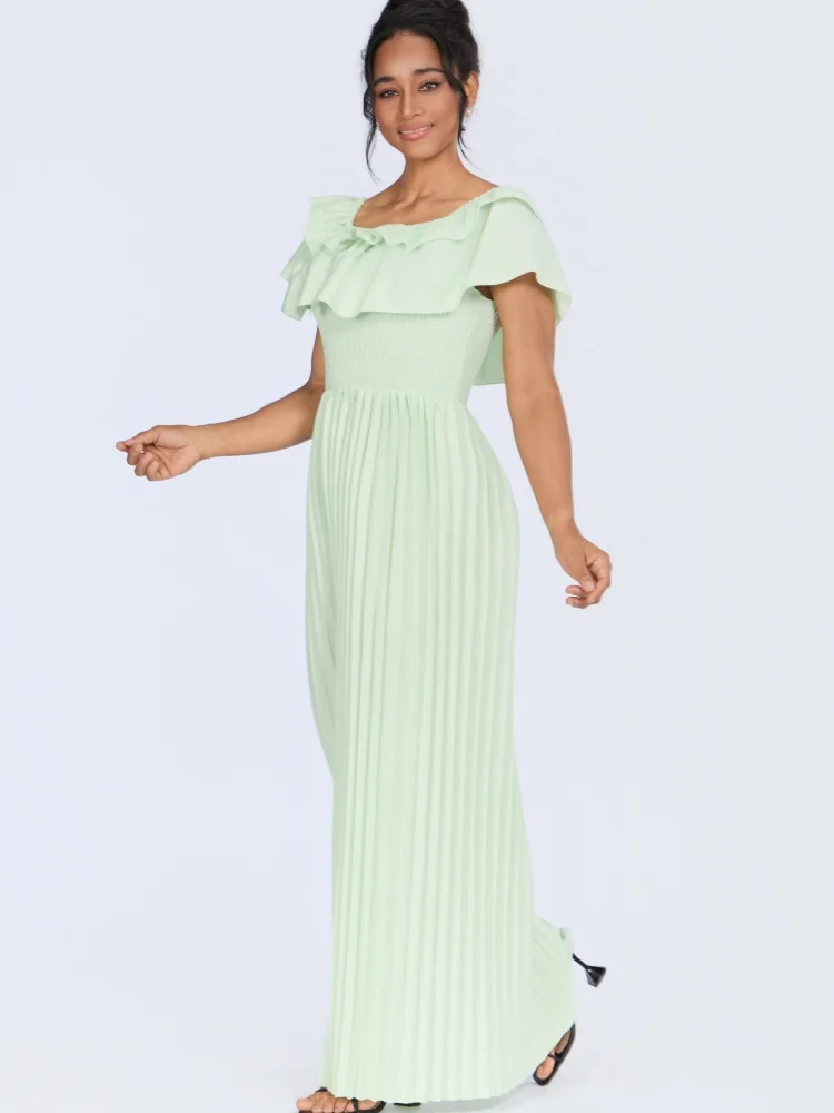 ZYHT 73849 European Wholesale Fashion Casual One Shoulder Ruched Maxi Dress Side Slit Pleated Long Sleeve Dresses for Women