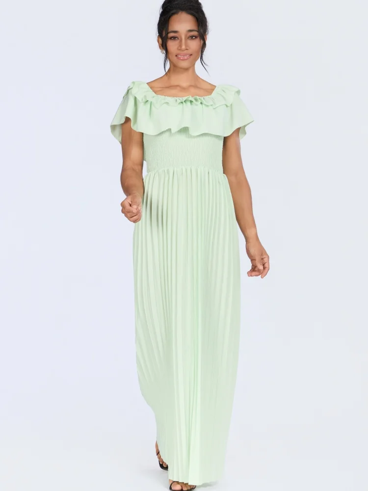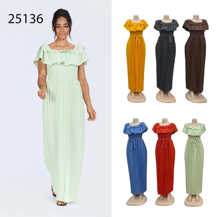 Wholesale New Fashion Summer Elegant a Word Pleated Elegant Casual Round Neck Dress