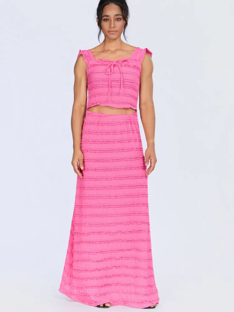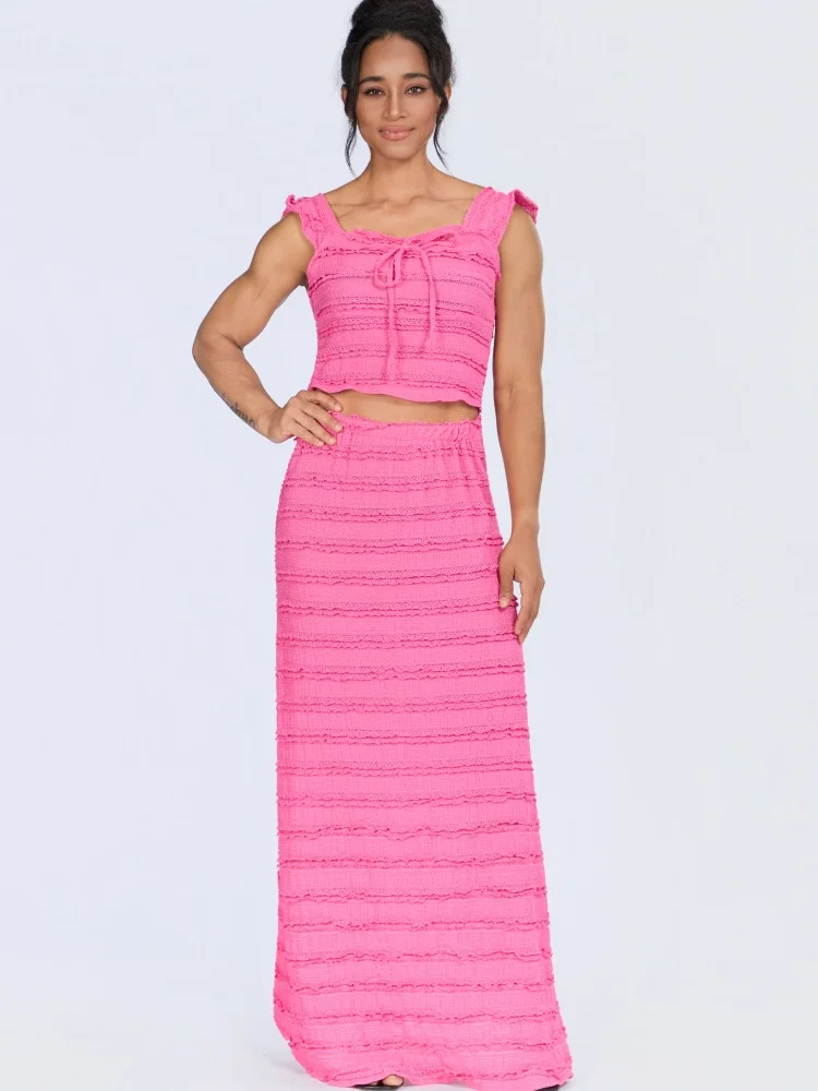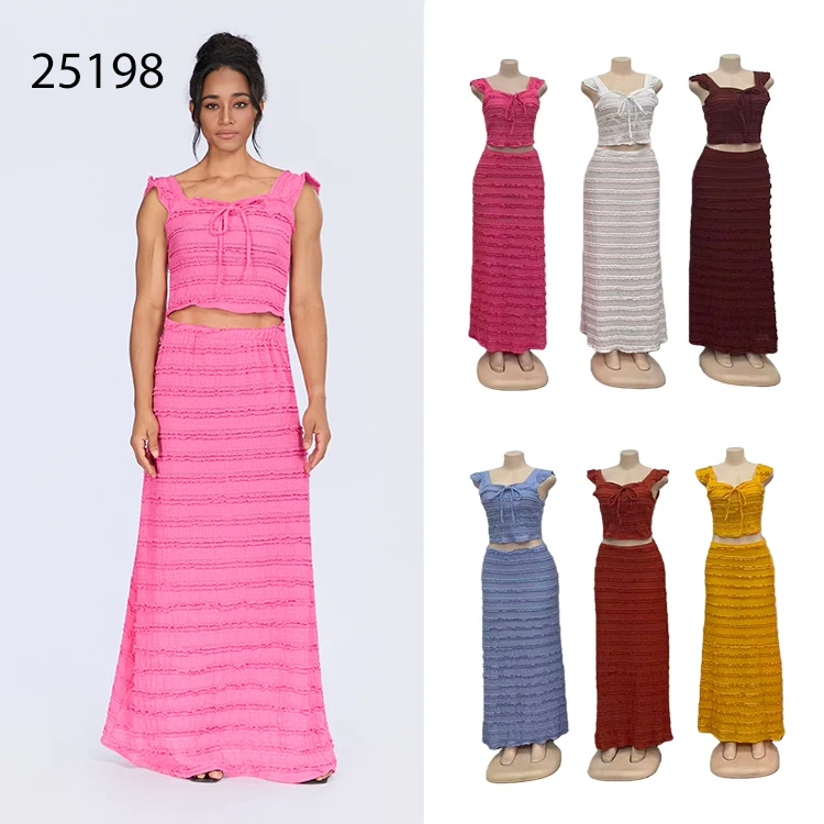 Wholesale New Summer Striped Fashion Solid Color Women's Sleeveless Vest High Waist Skirt Set