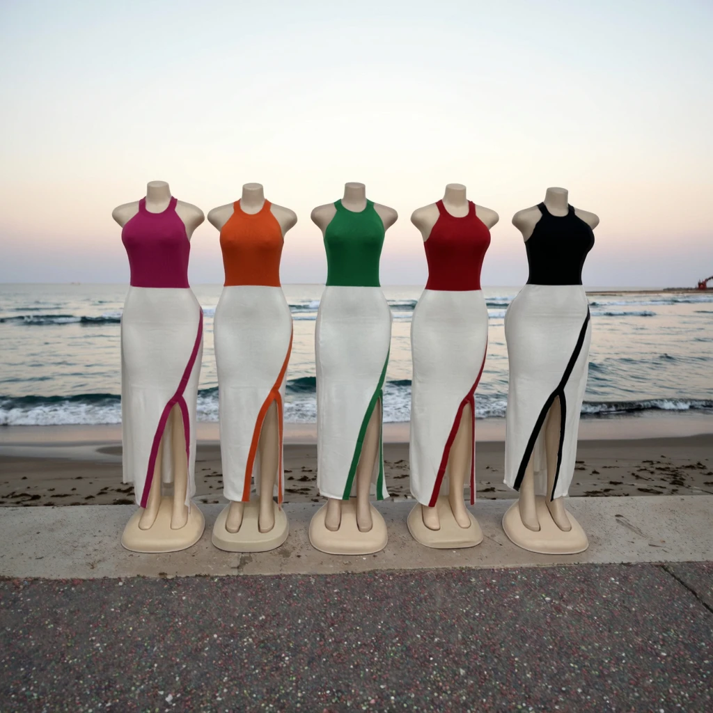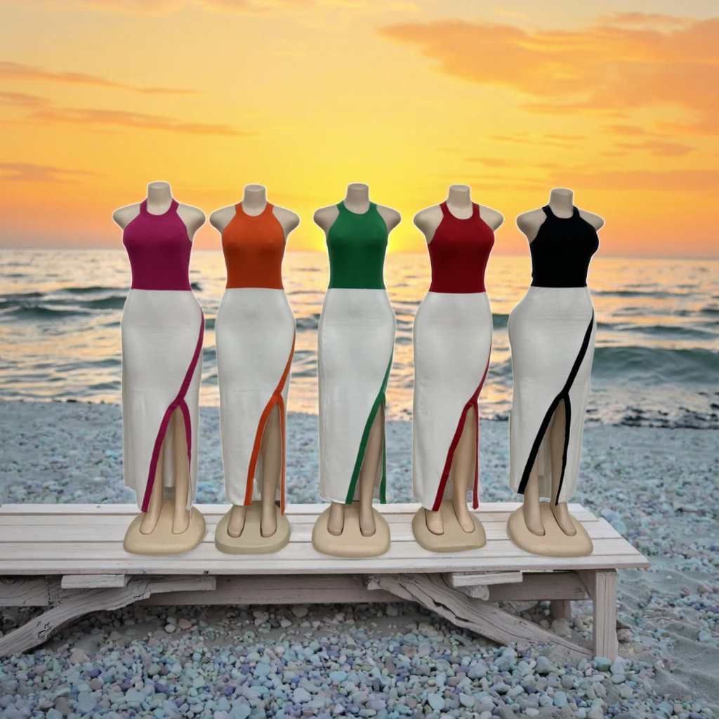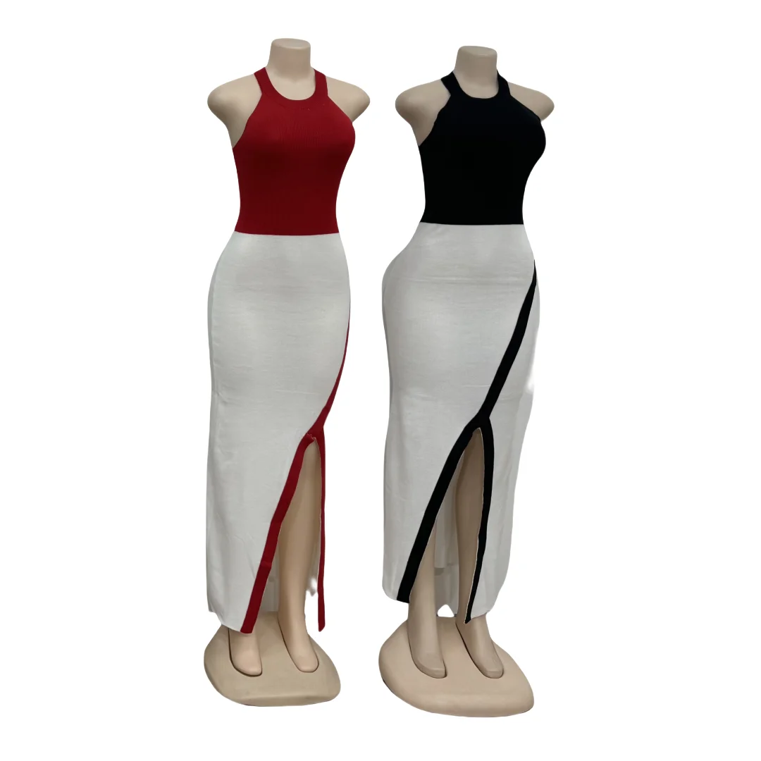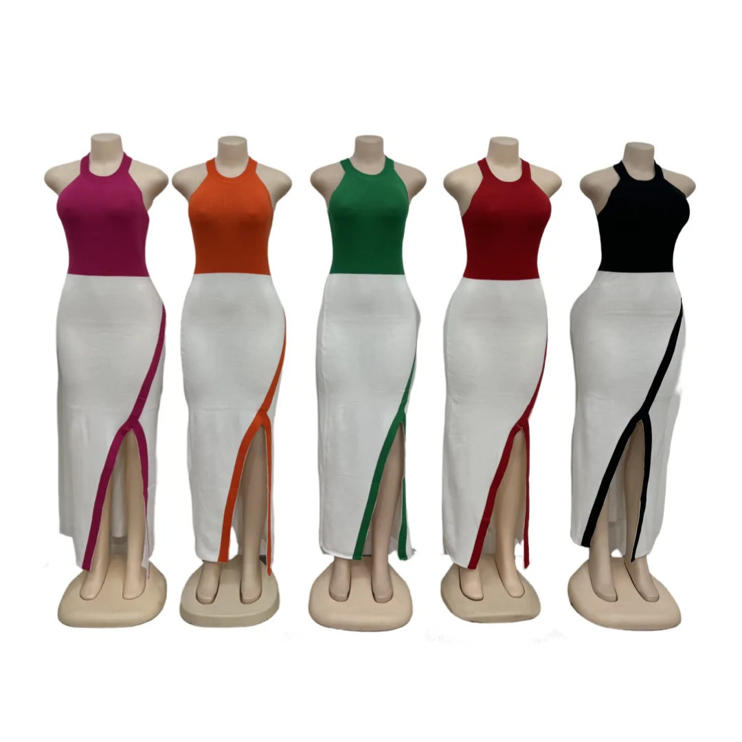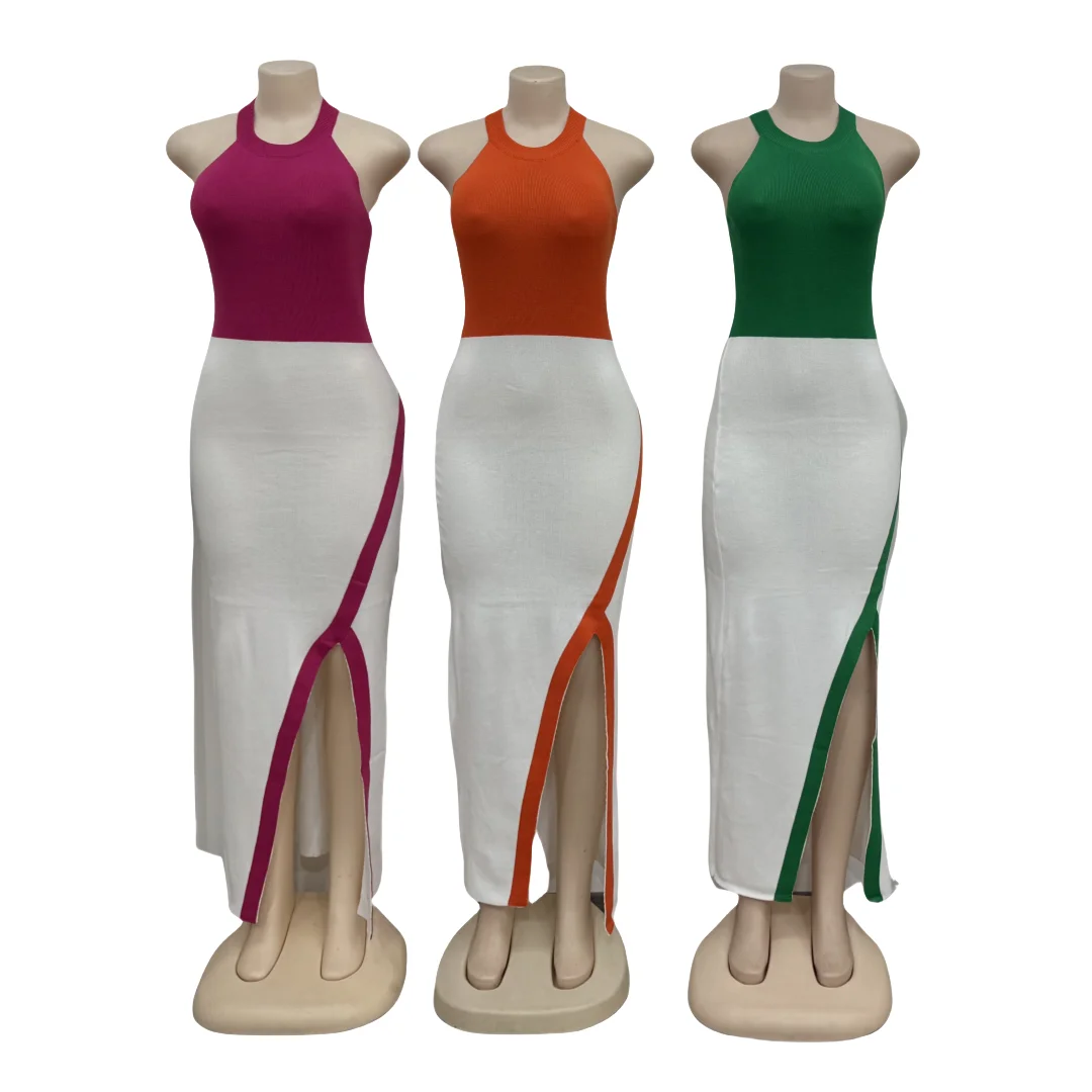 New Summer Elegant Women Dress Sexy Multicolor Split Knitted Dress Casual Tight Mini Dress