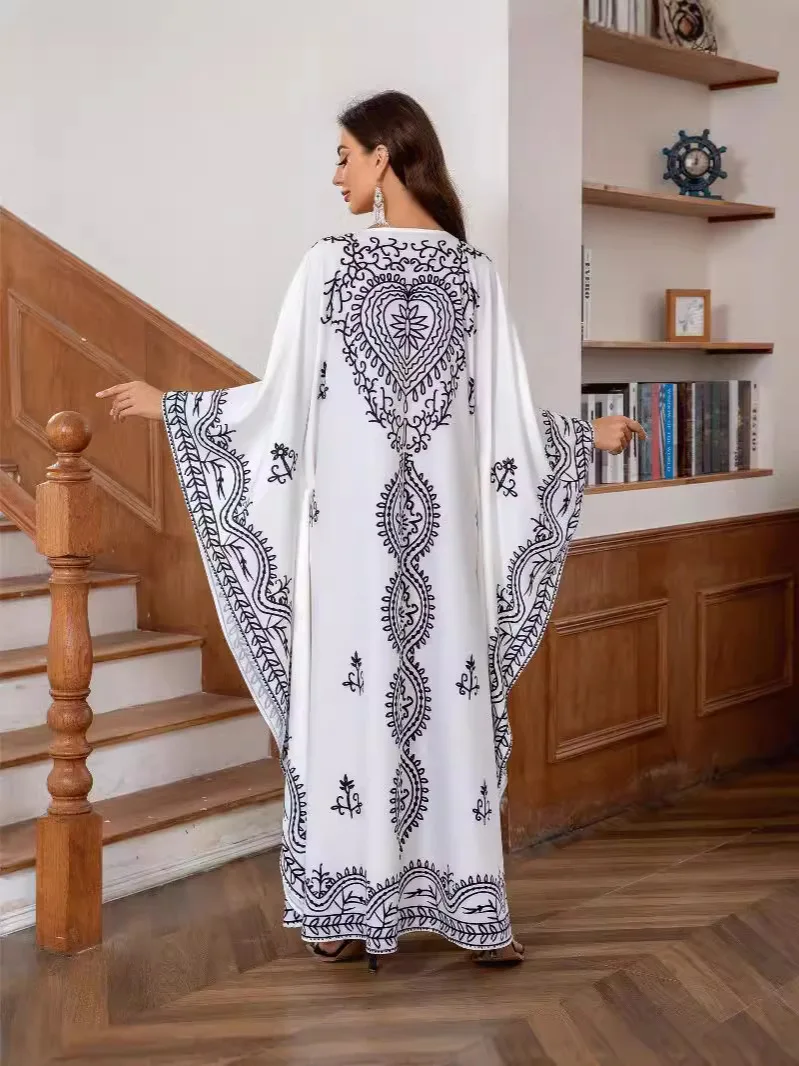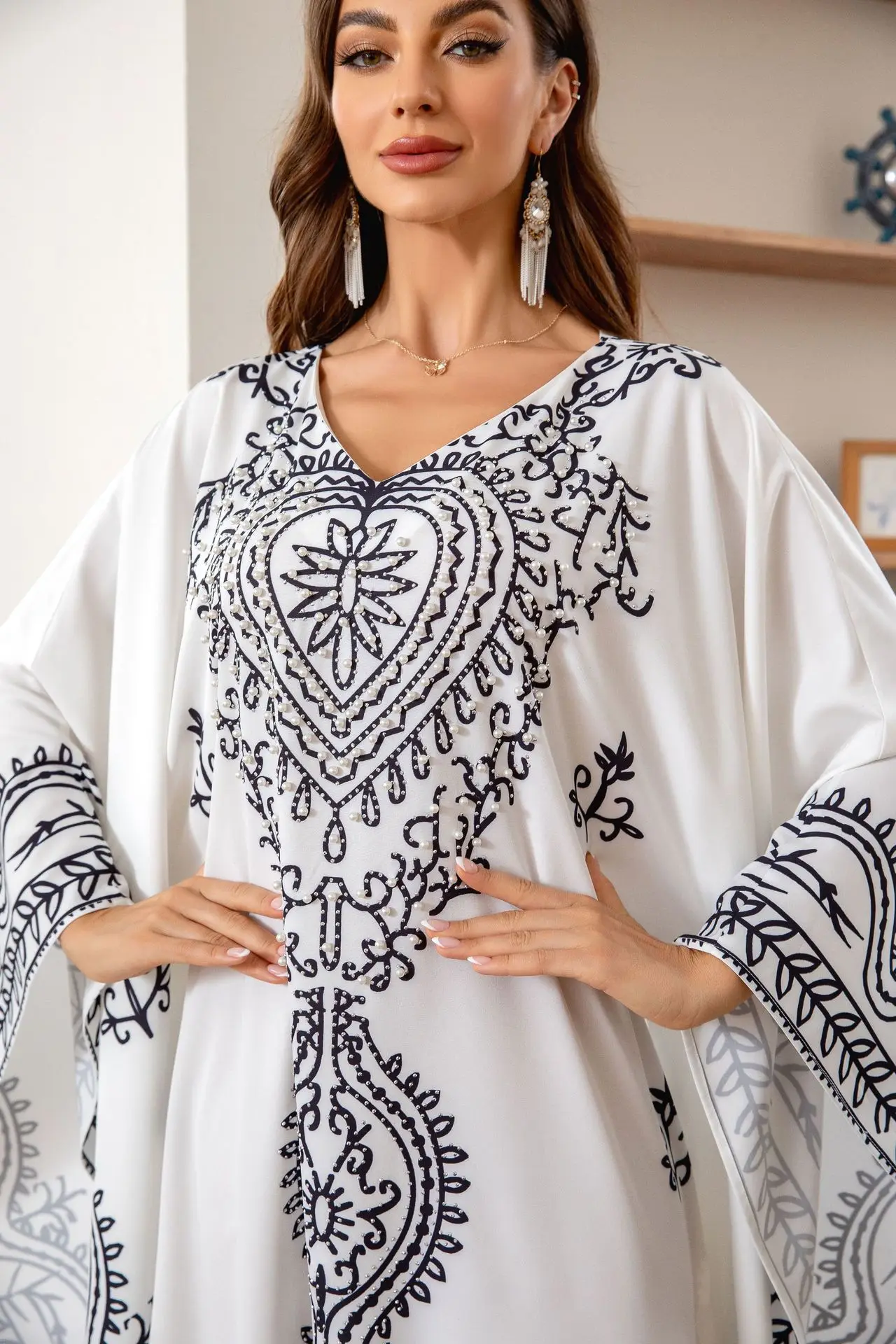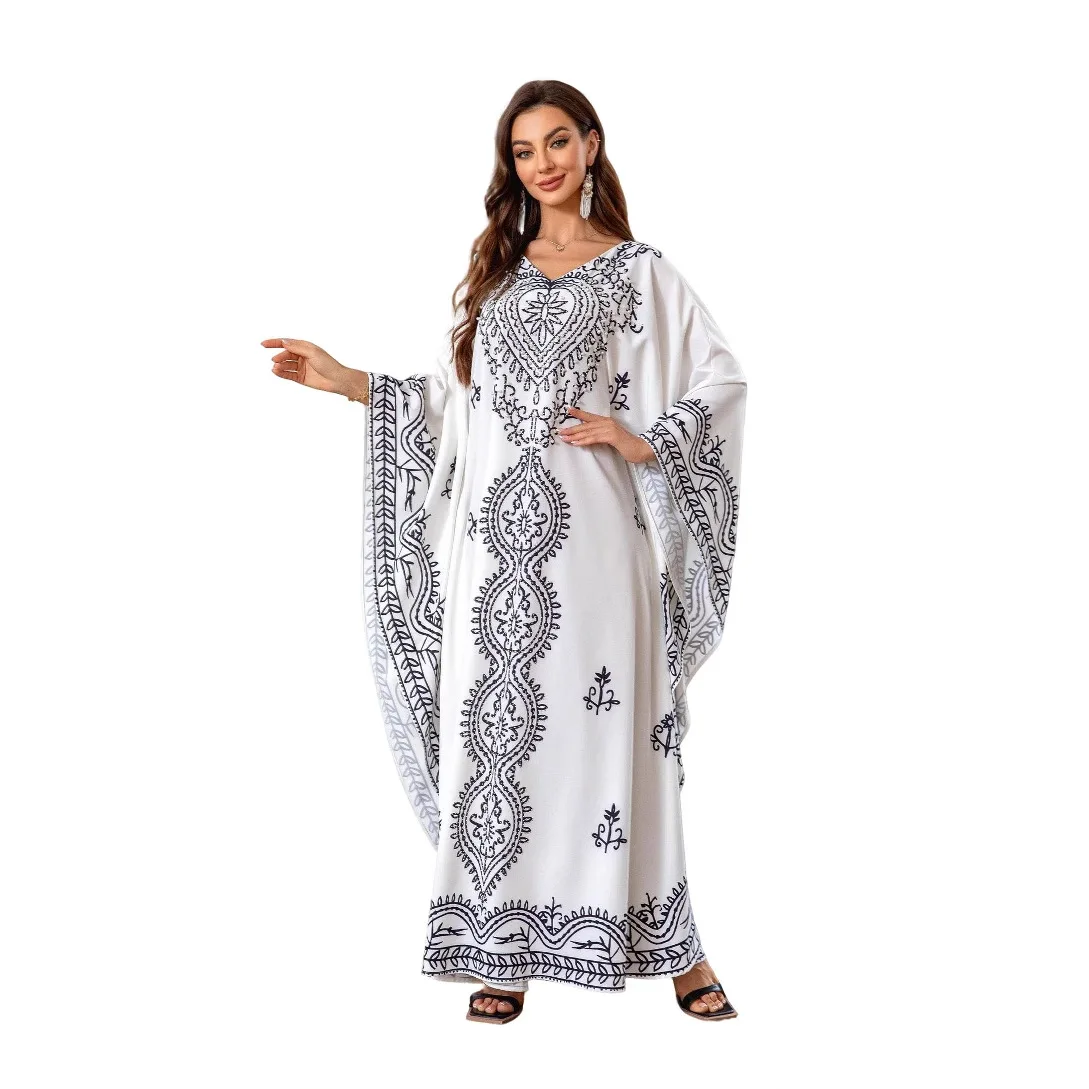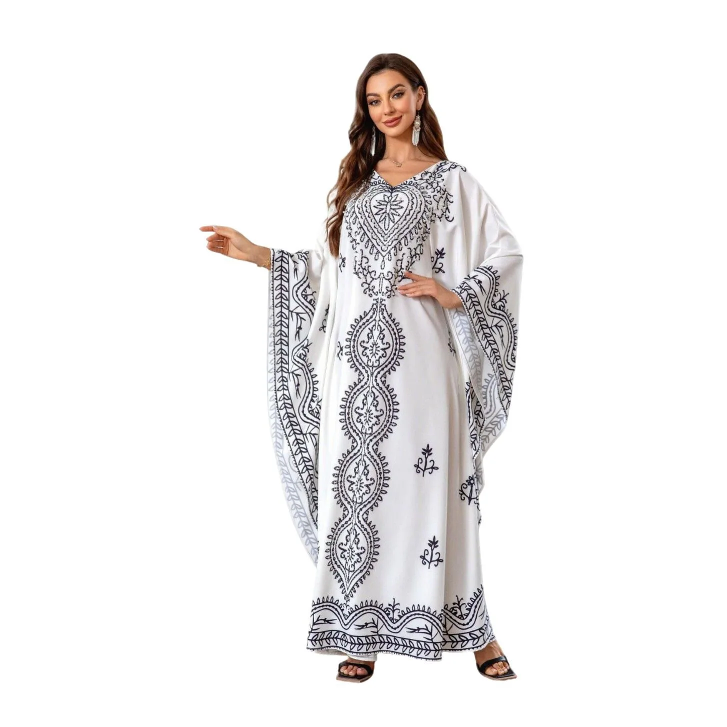 New Wholesale Muslim Women's Robe Large Size Loose V-neck Printed Fashion Dress