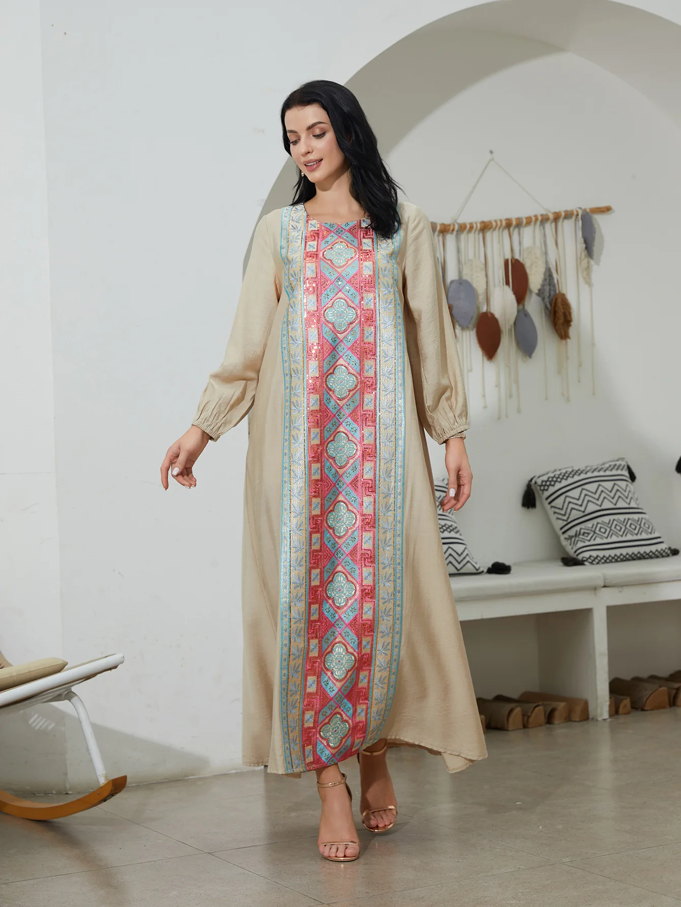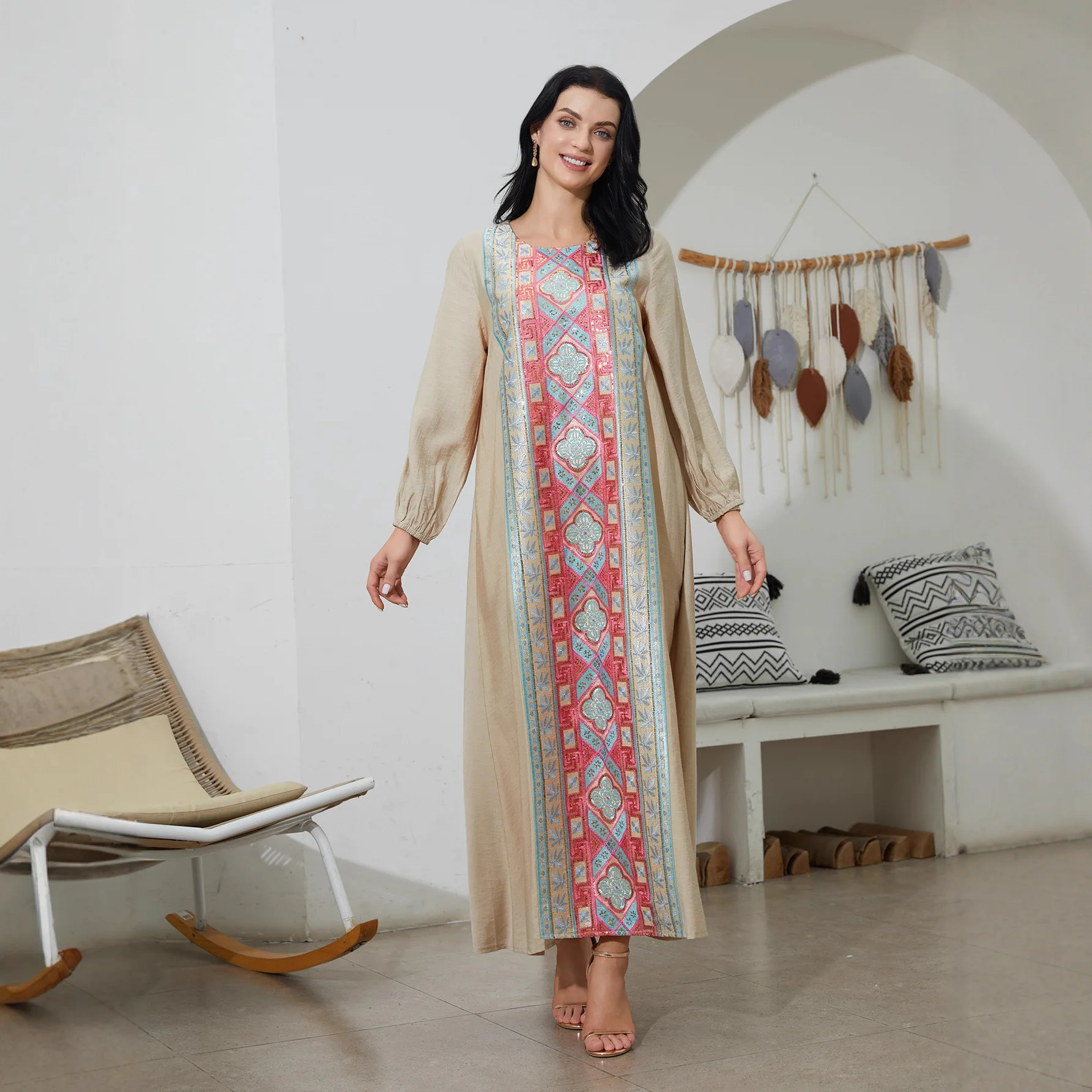 Wholesale New Middle Eastern Robe Long Sleeve Embroidered Beaded Evening Dress Muslim Dress
