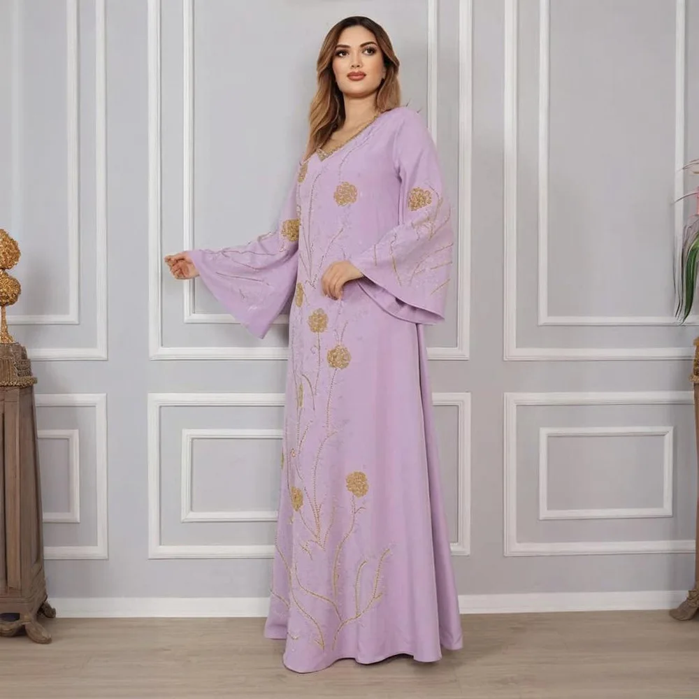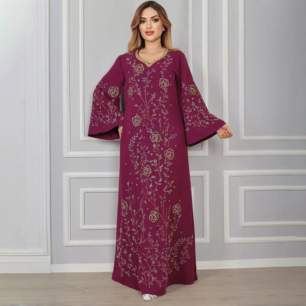 Wholesale New Middle Eastern Muslim Women Robe Rhinestone Abaya Elegant Loose Dress