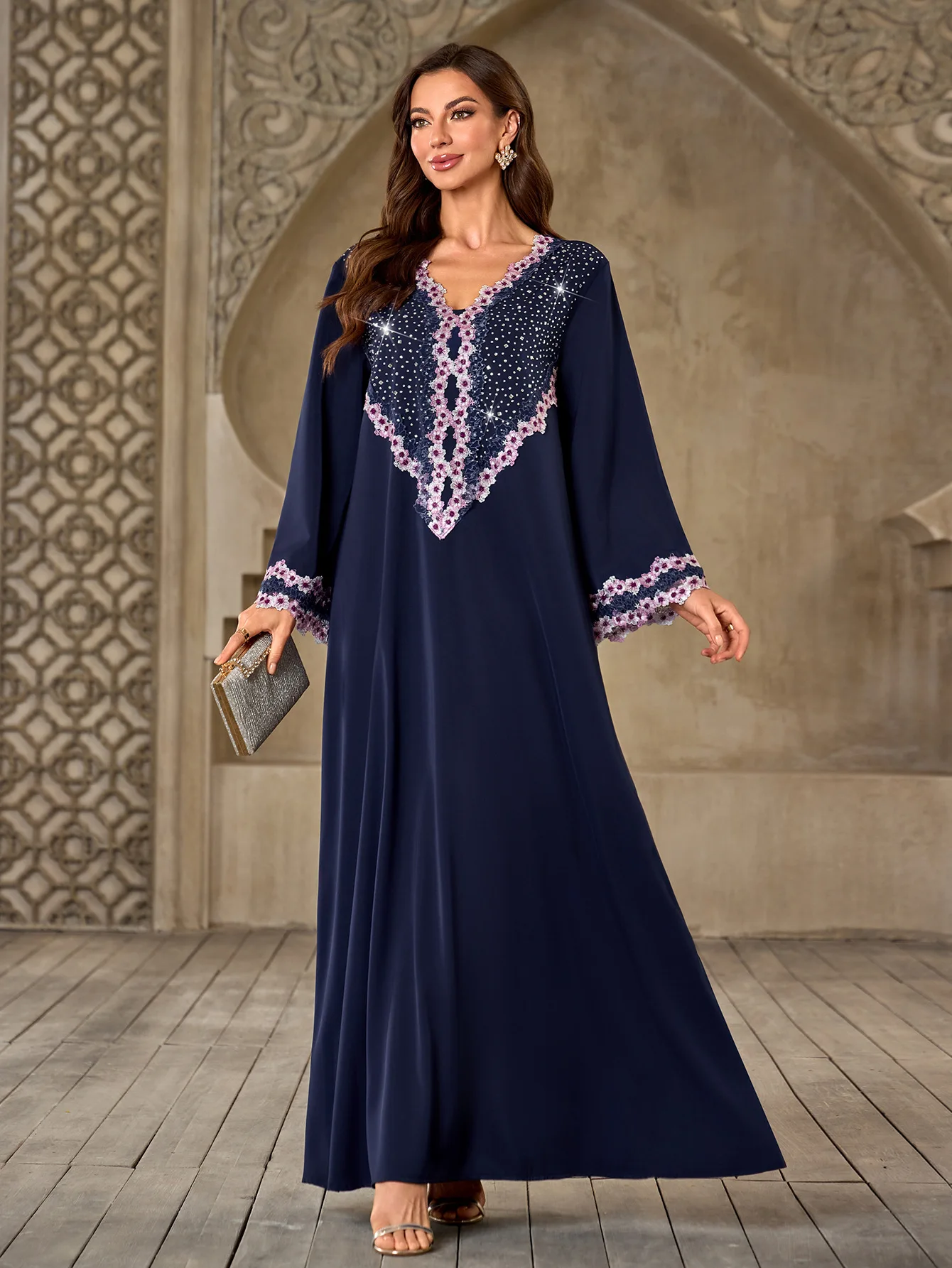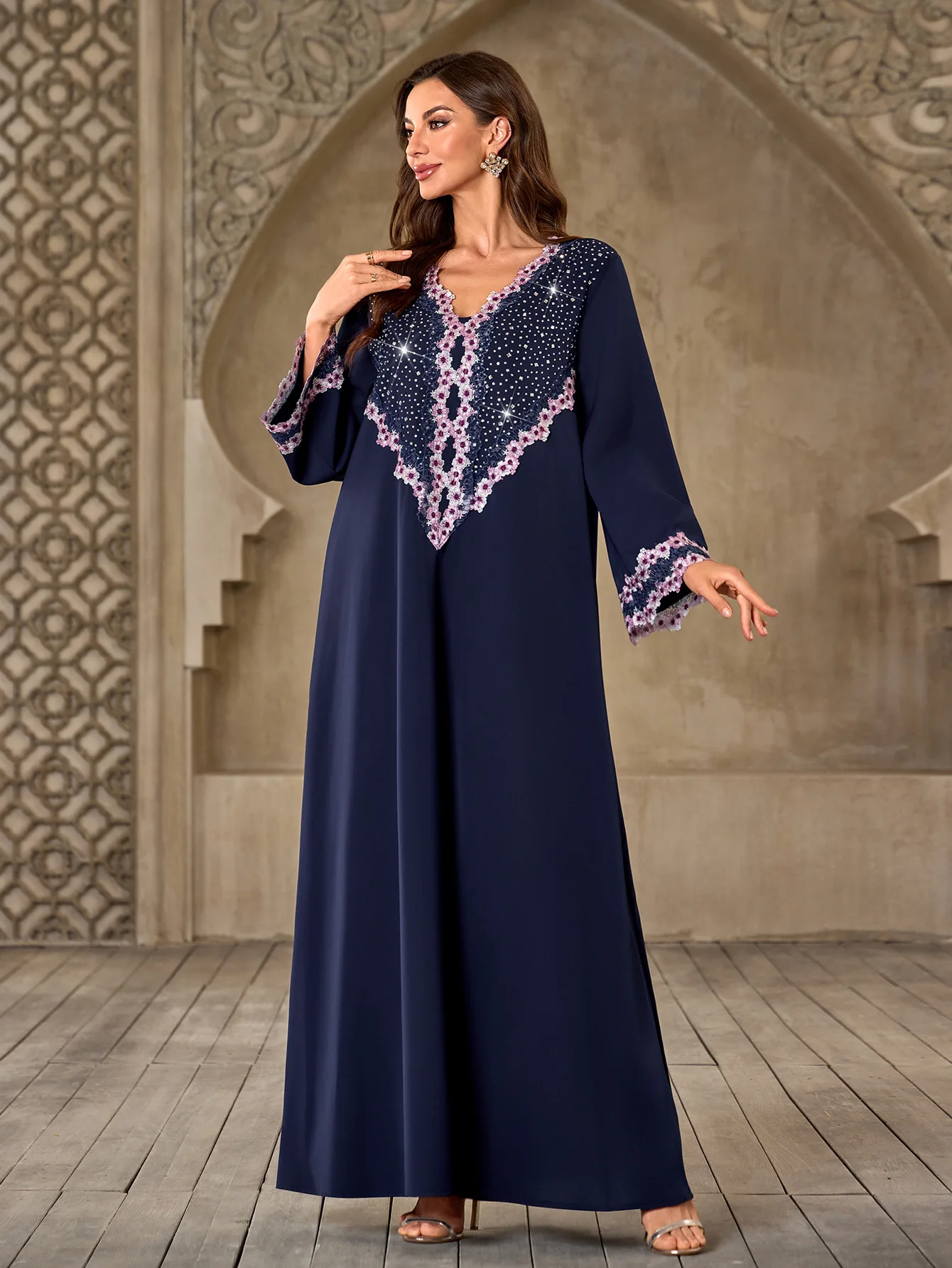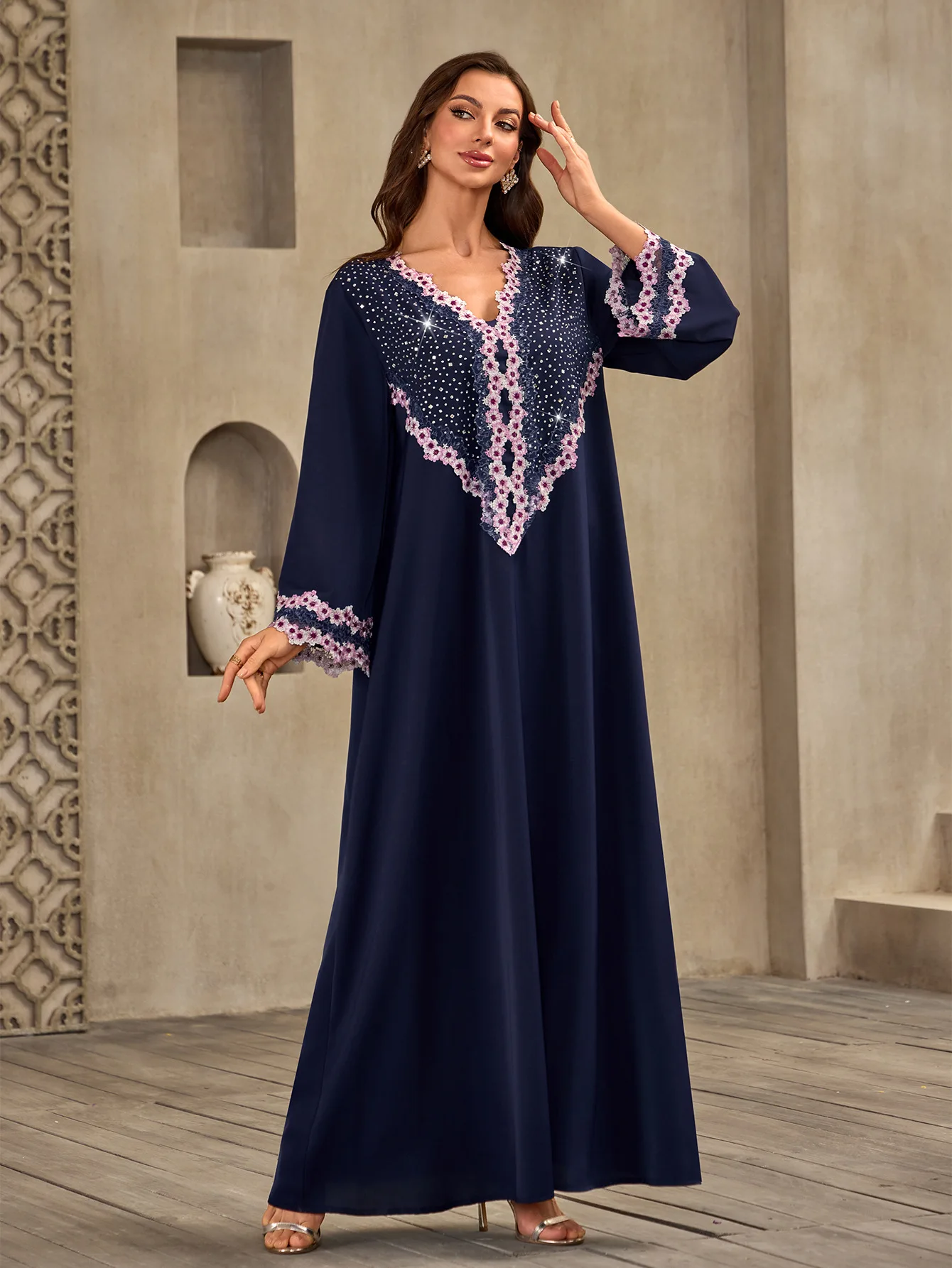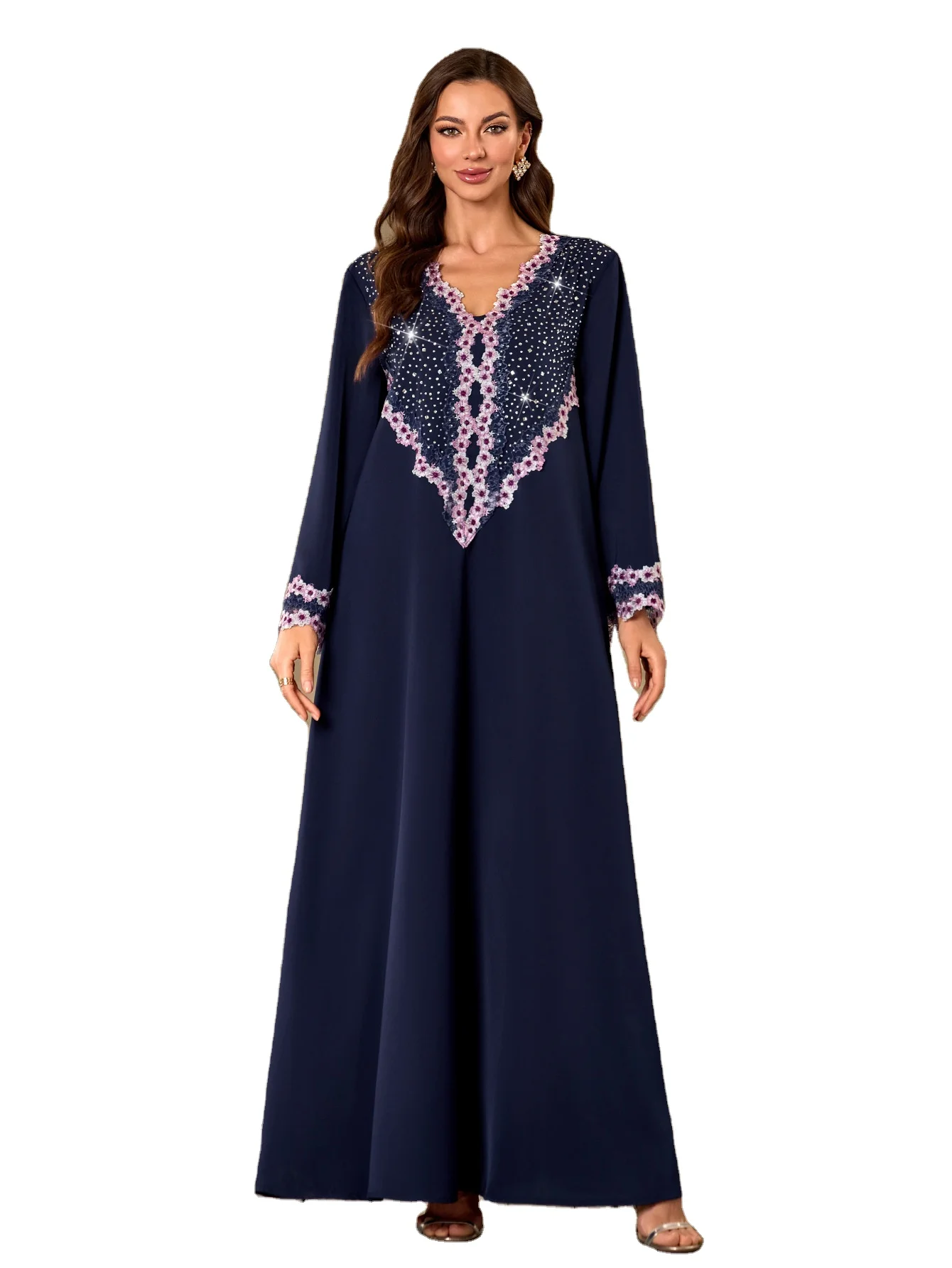 Wholesale New Middle Eastern Muslim Robe V-neck Loose Long Sleeve Casual Dress