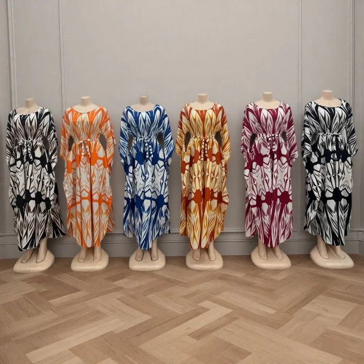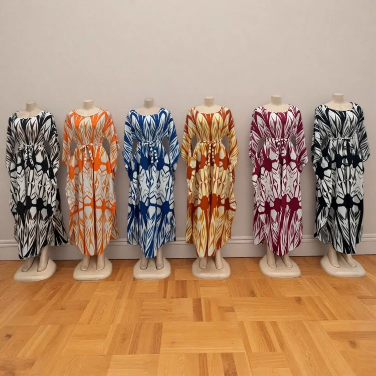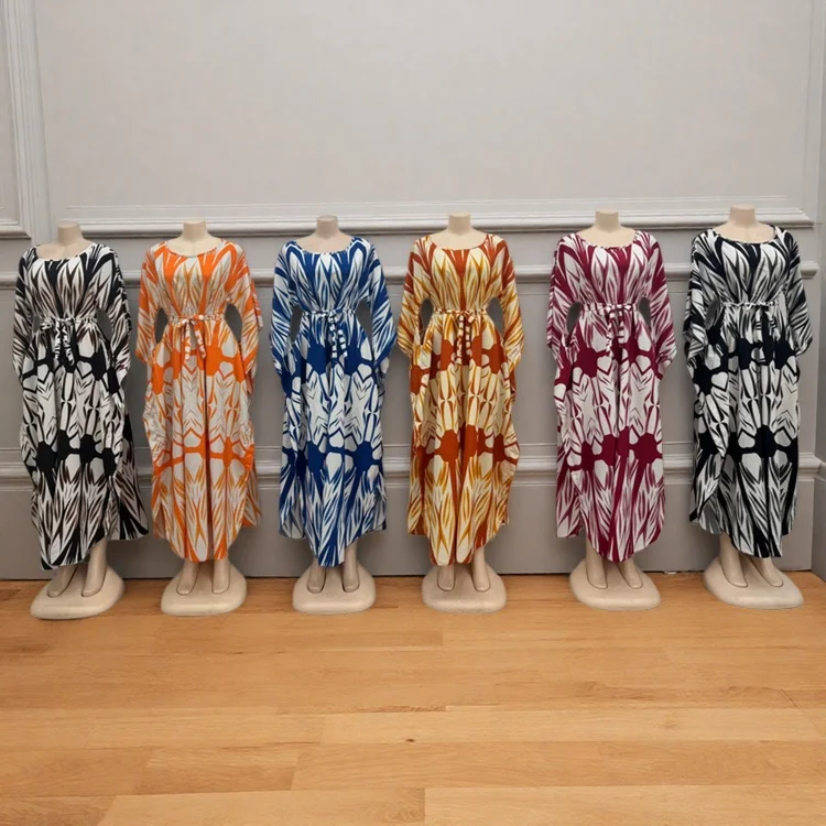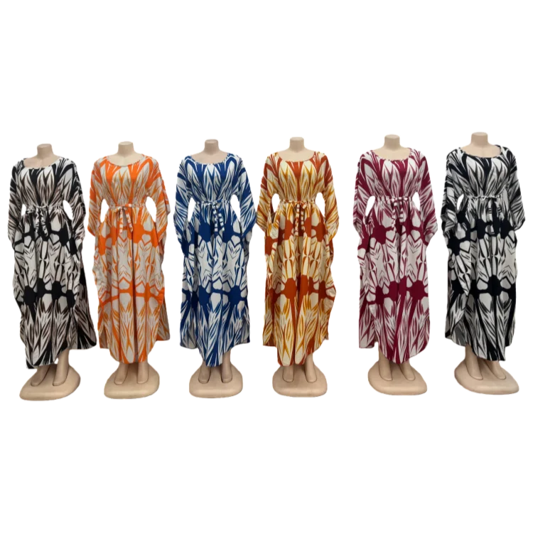 Wholesale New Fashion Casual Summer Round Neck Printed Women Loose Fashion Long Sleeve Dress