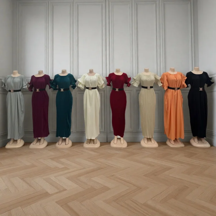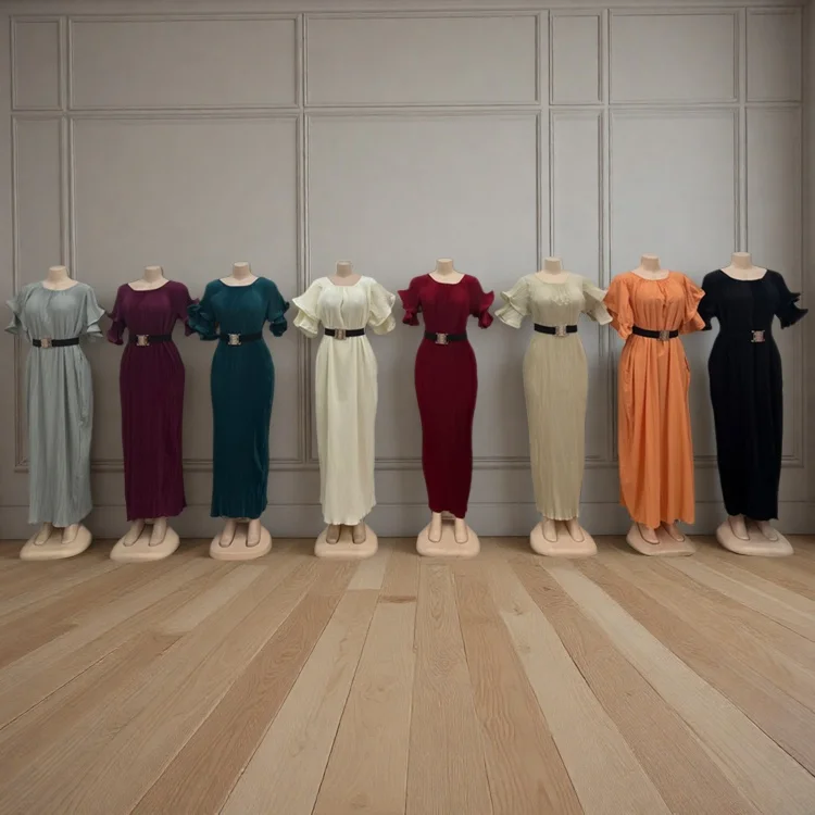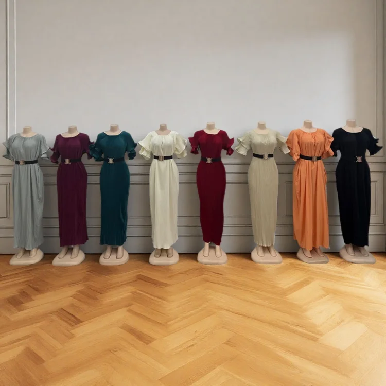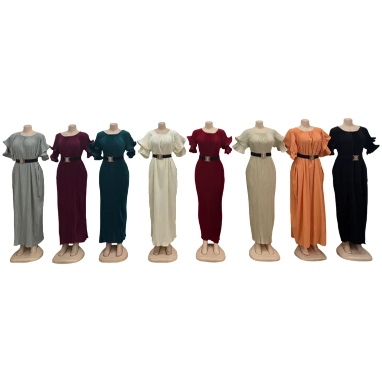 Wholesale Women's Loose Elegant Round Neck Short Sleeve Casual Large Size Belt Dress