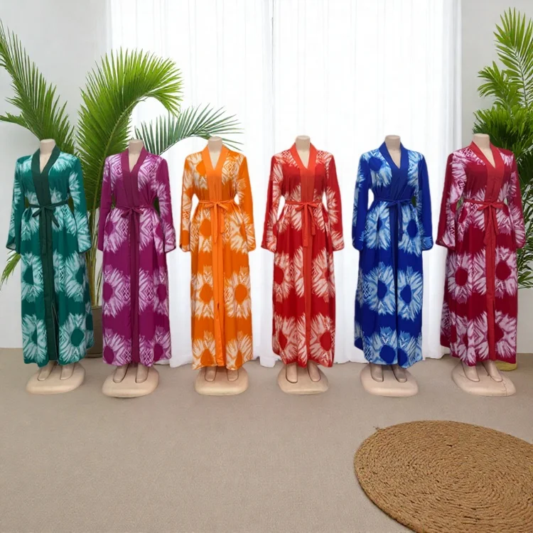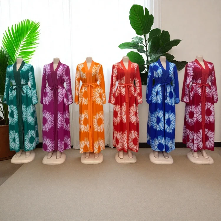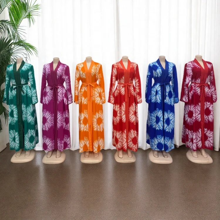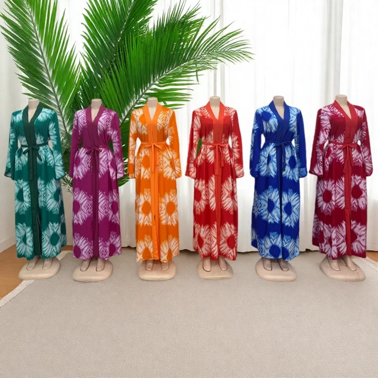 Wholesale New Fashion Loose Elegant Summer Printed Women Muslim Robe Long Sleeve Dress
