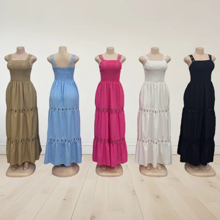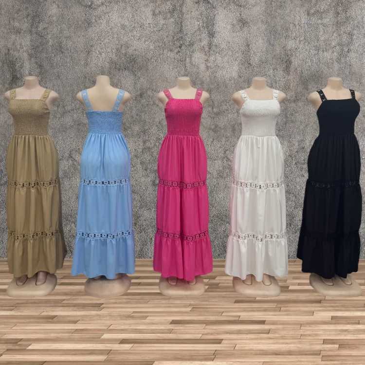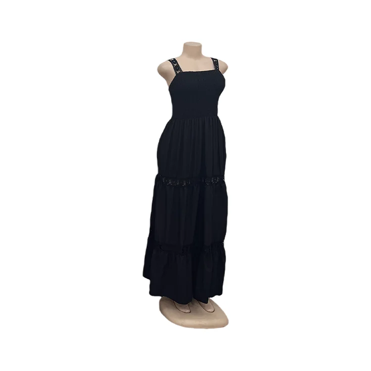 Wholesale New Casual Large Size Women's Summer Sleeveless Backless Stitching Hollow-out Dress