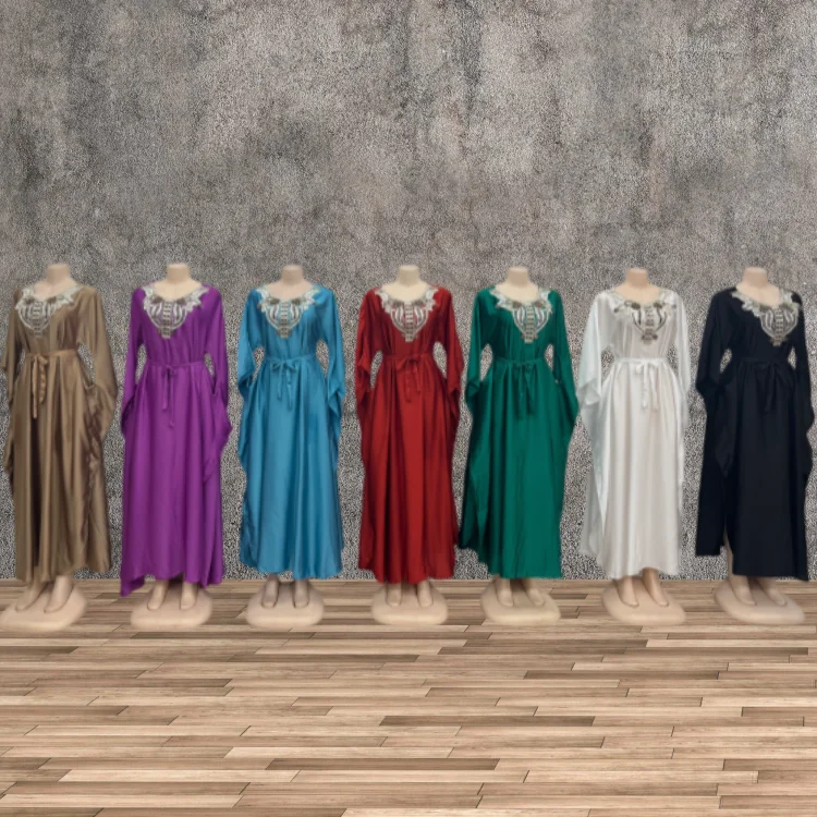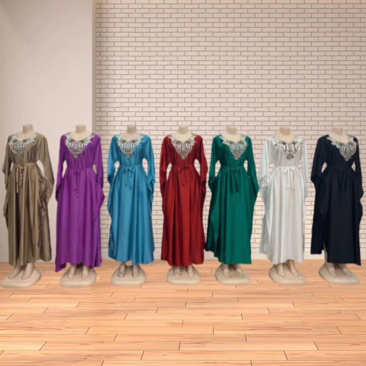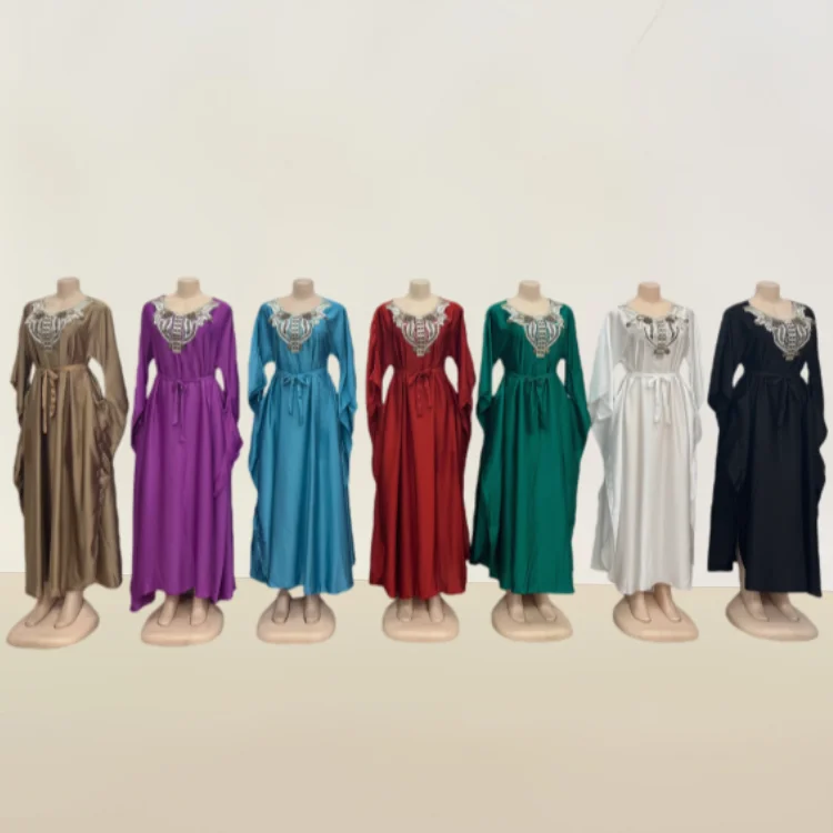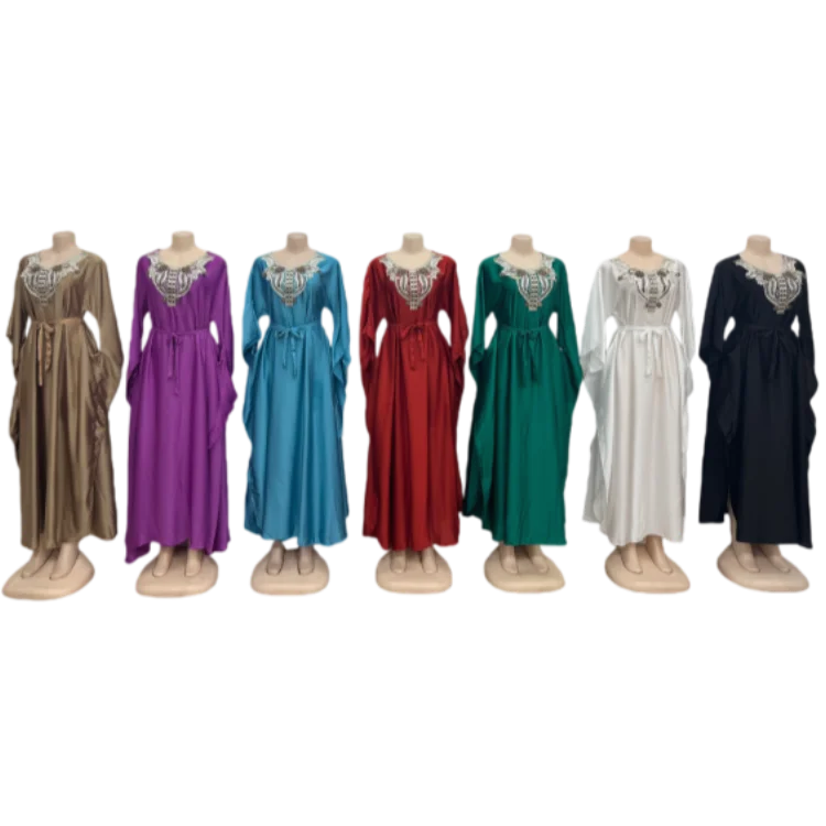 Wholesale New Elegant Women Muslim Robe Embroidered Lace-up Long Sleeve Casual Dress