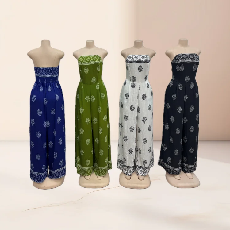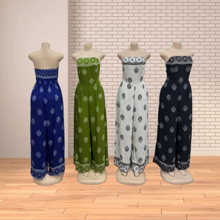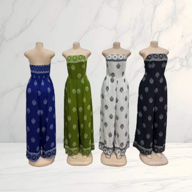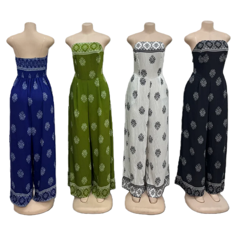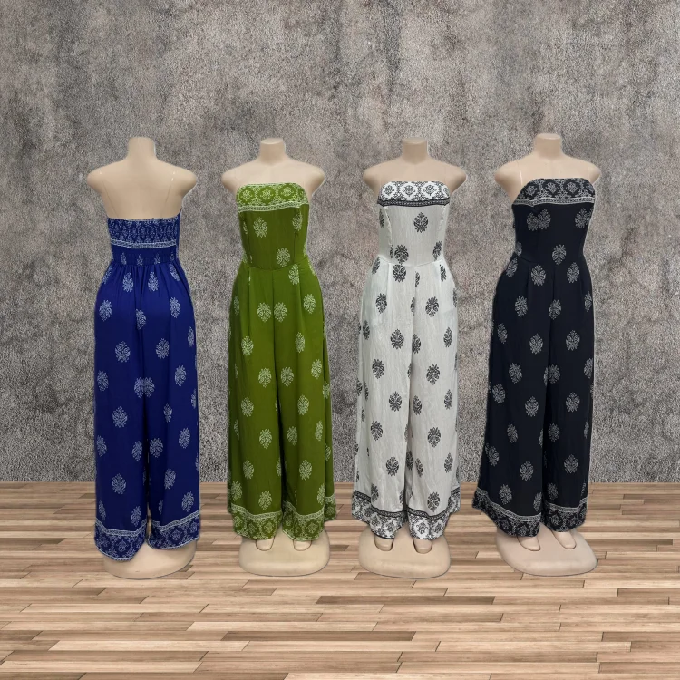 New Wholesale Women's Printed Casual Loose Jumpsuit Strapless Backless Wide Leg Pants