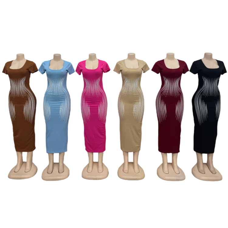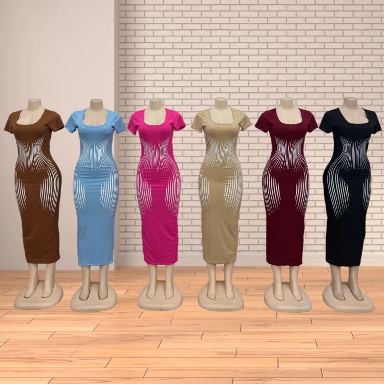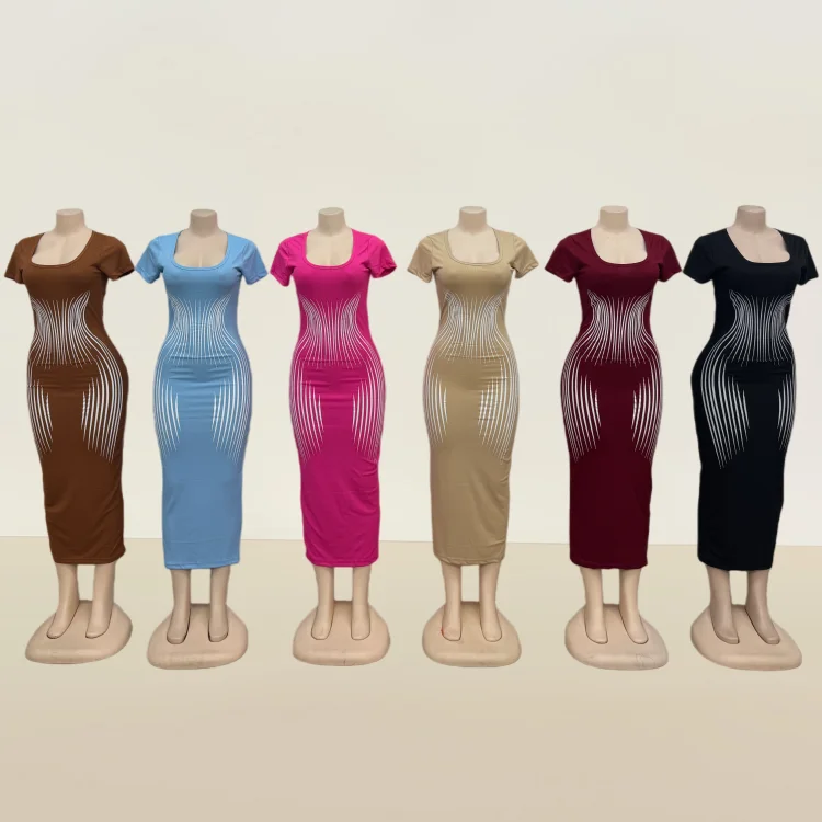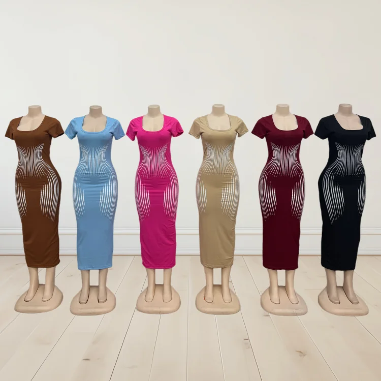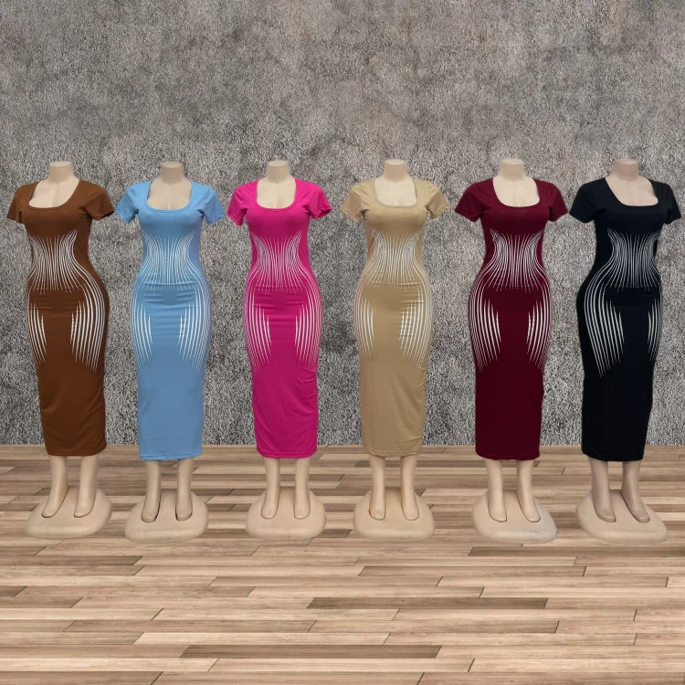 New Wholesale Summer Women's Casual Printing Fashion Short Sleeve High Waist Fishtail Dress