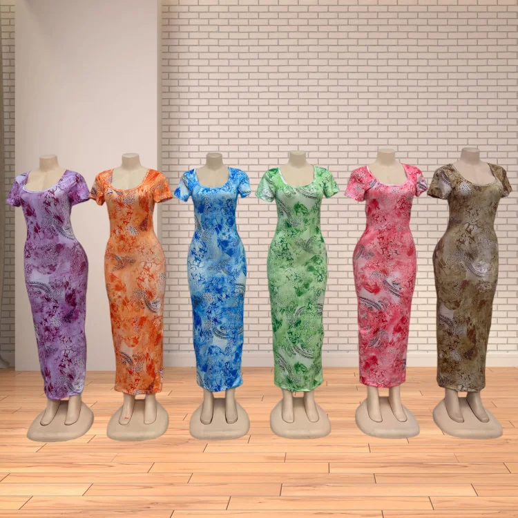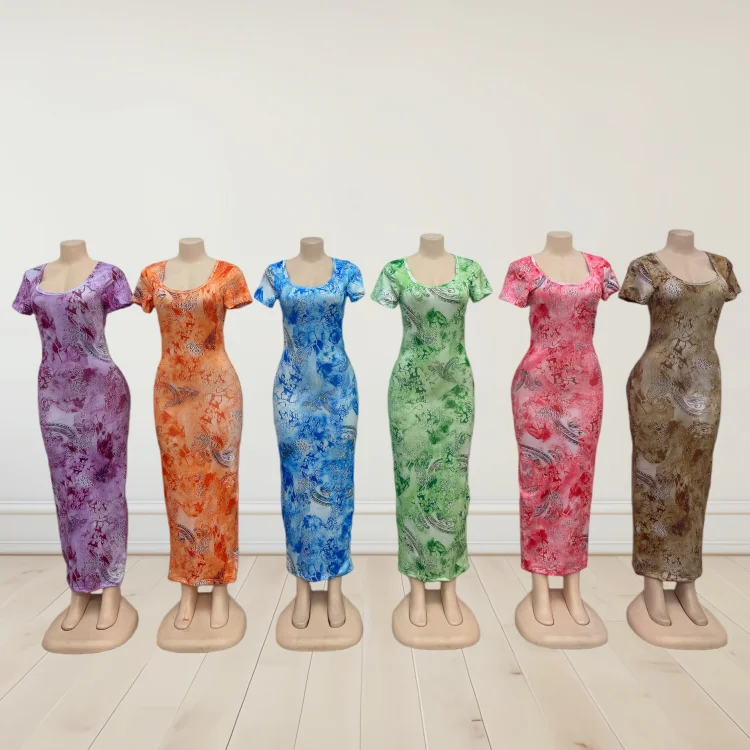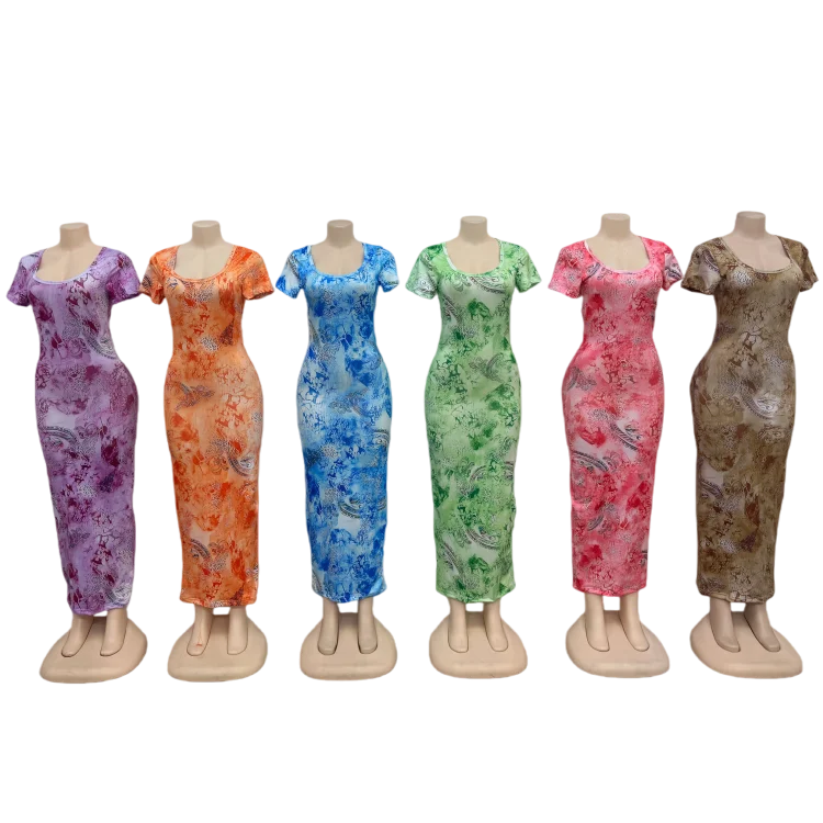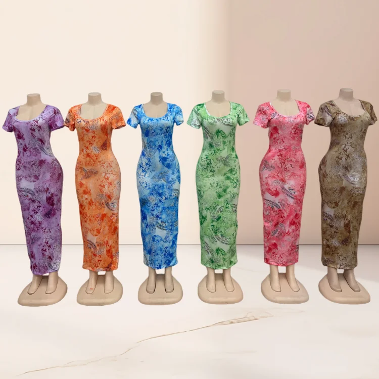 Wholesale New Fashion Slim Short Sleeve square Collar Printed Women's Summer Dress