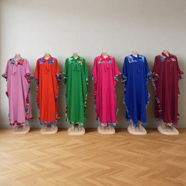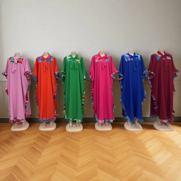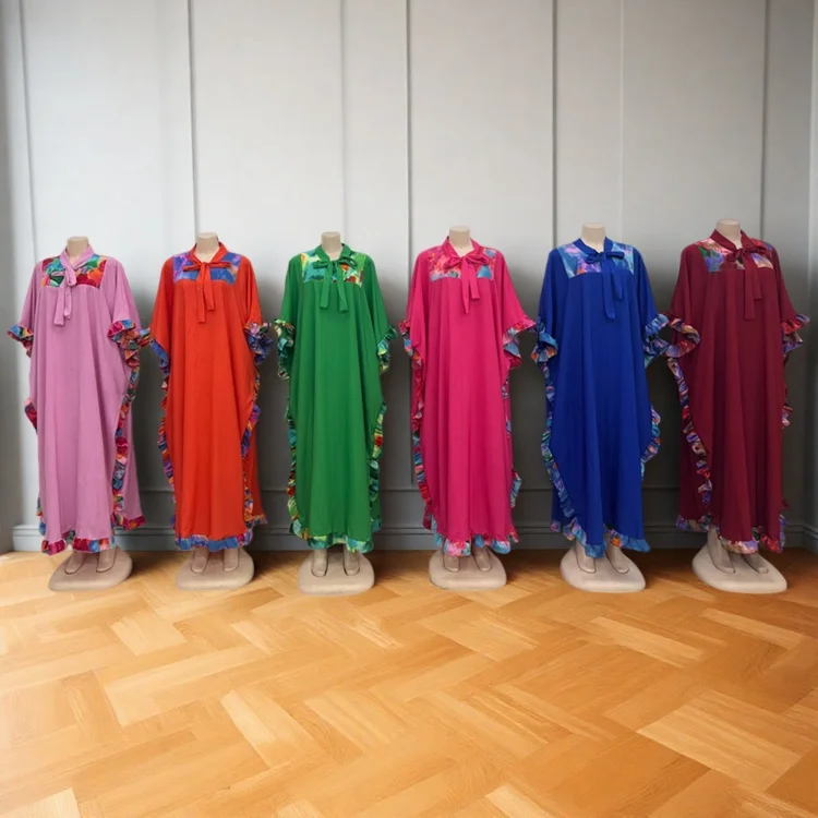 Wholesale New Women Summer Casual Printed Ruffled Plus Size Short Sleeve Muslim Dress