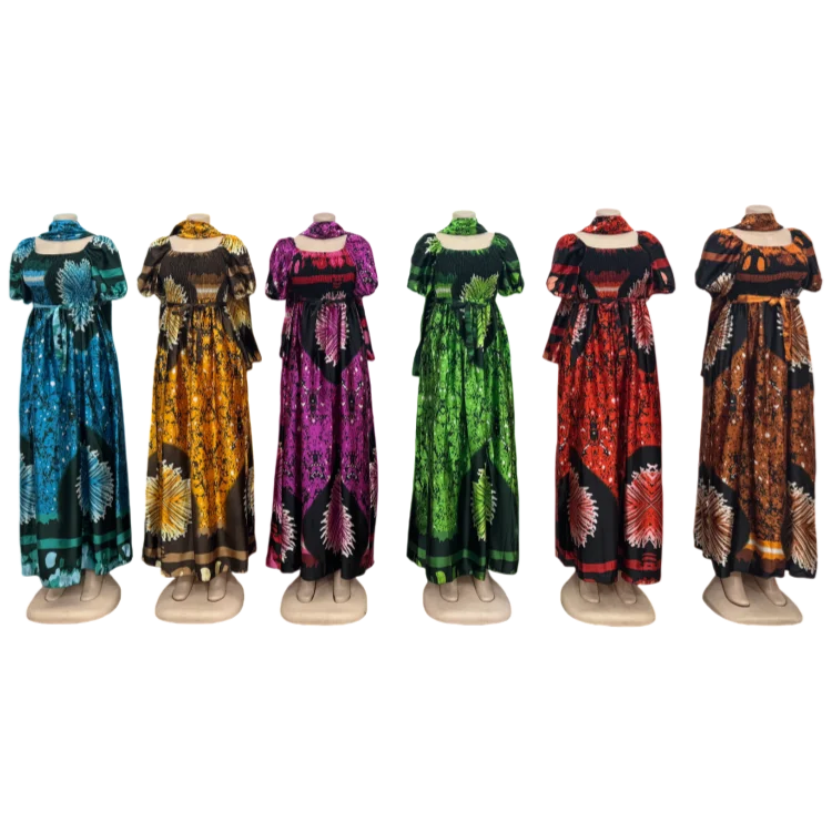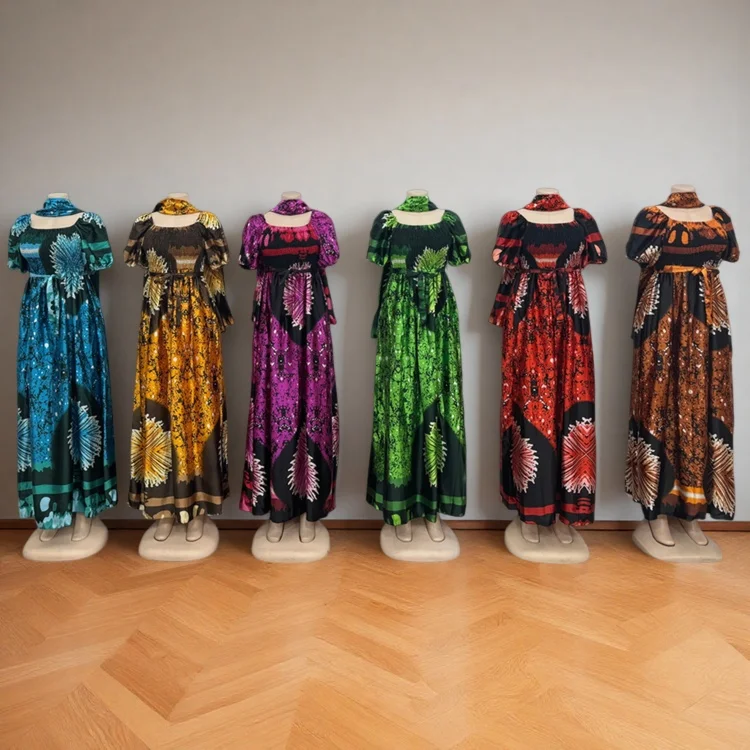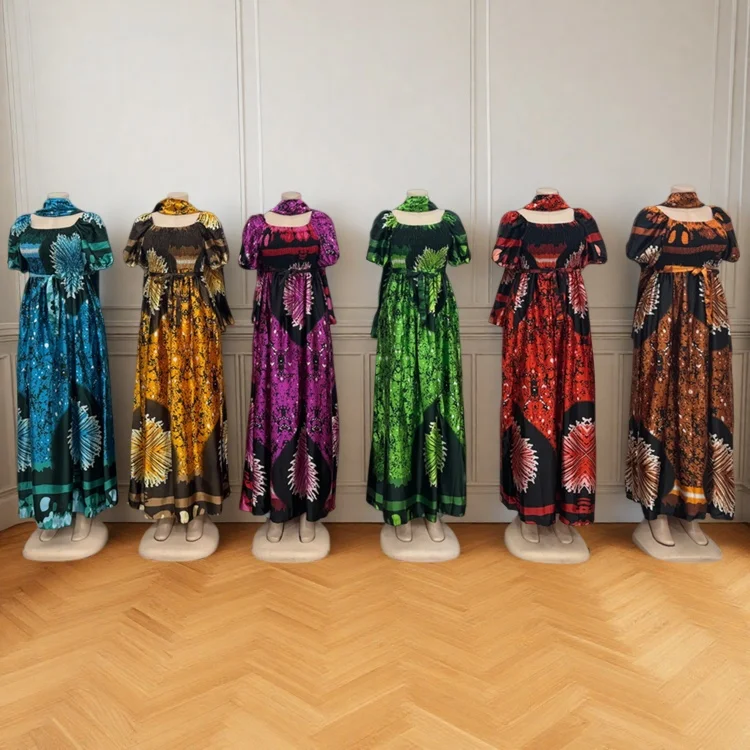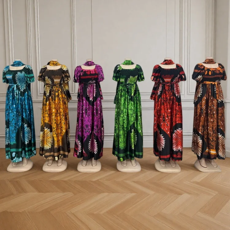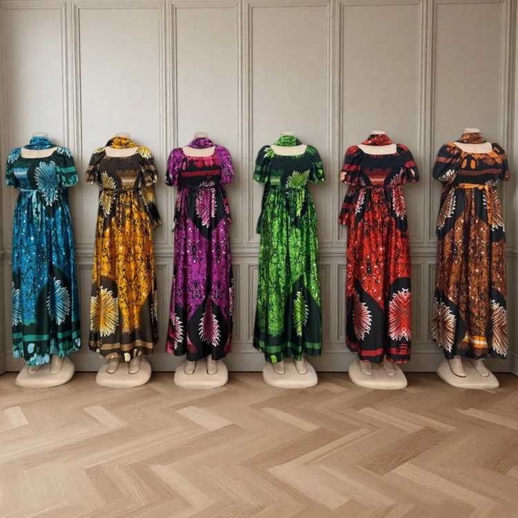 Wholesale New Fashion Casual Summer Square Collar Printed Women Loose Short Sleeve Dress