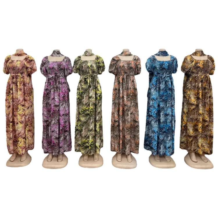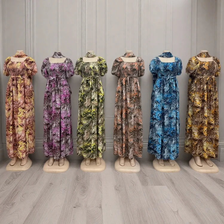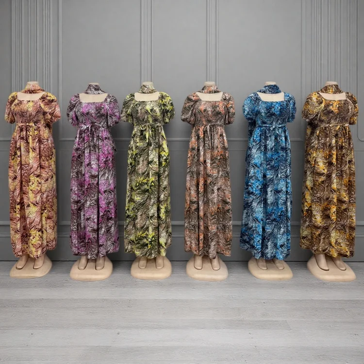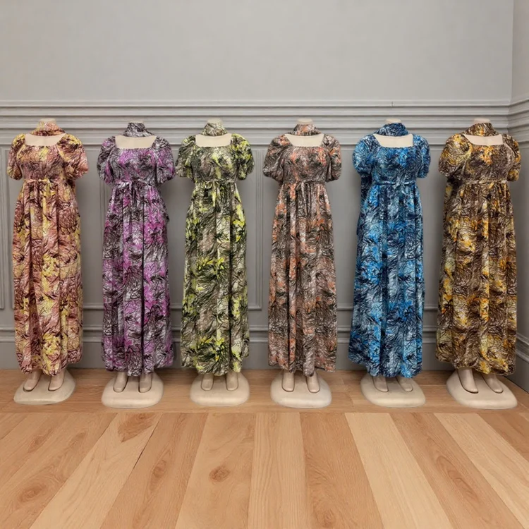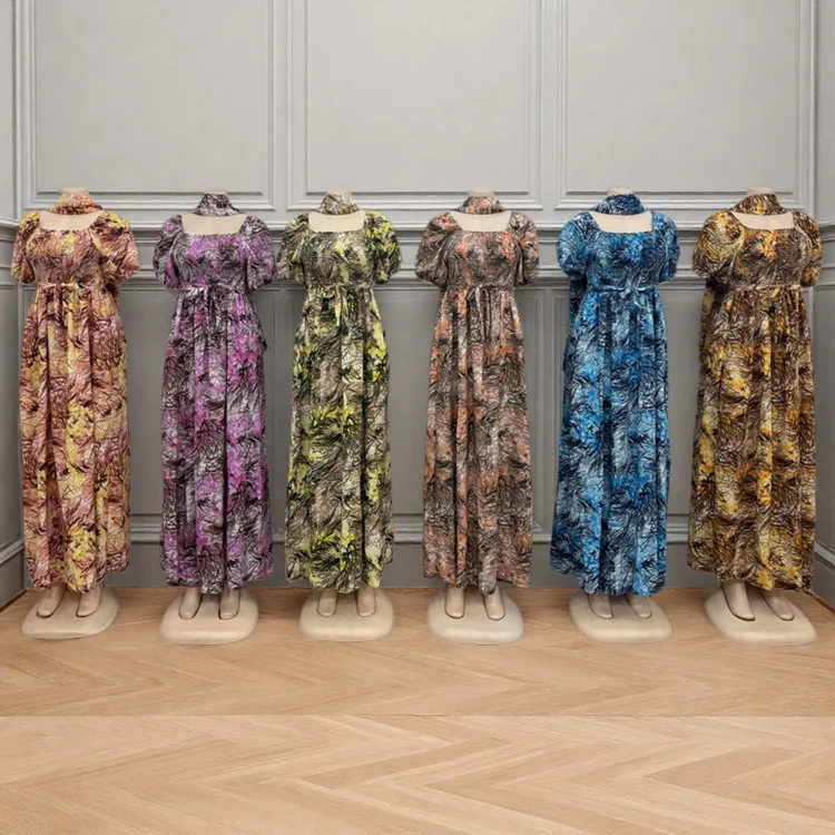Wholesale New Short Sleeve square Collar Printed a Line Summer Ladies Casual High Waist Dress
