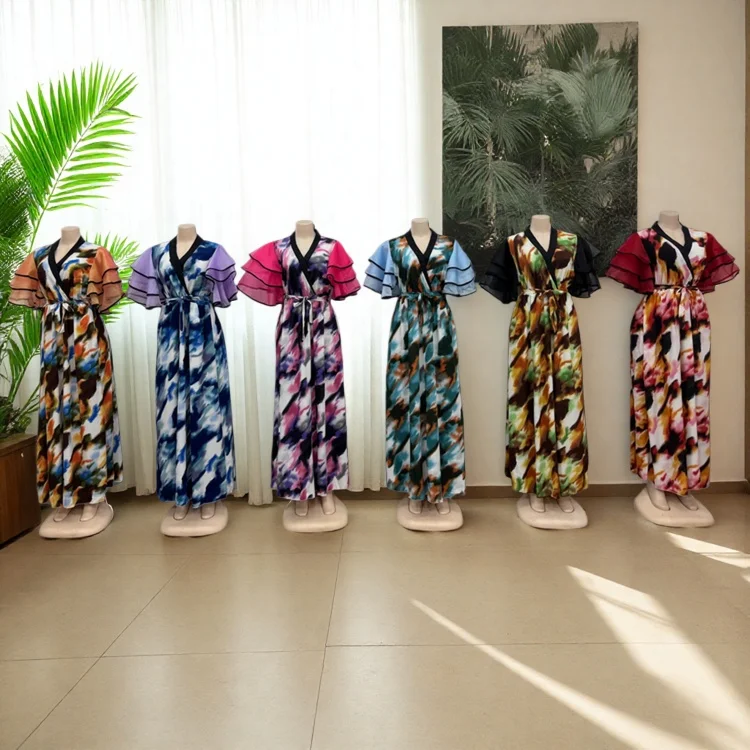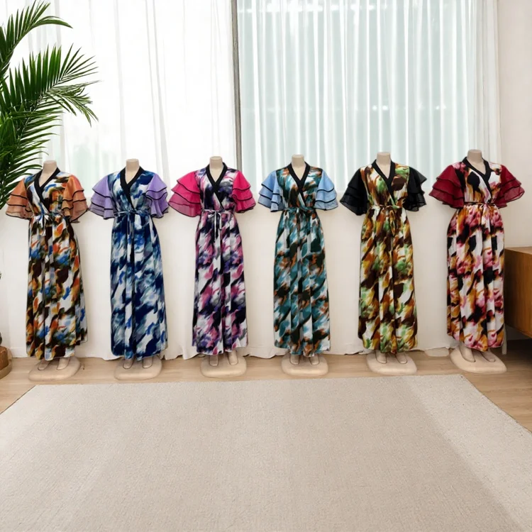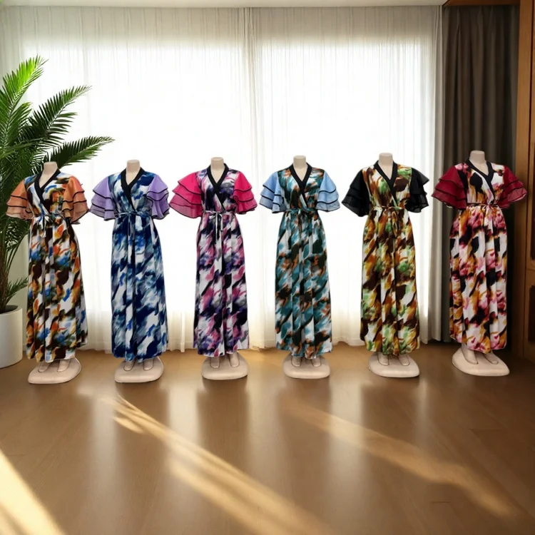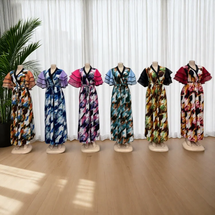 Wholesale New Women's Summer Lace-up Belted Slimming V-neck Short Sleeve Fashion Dress