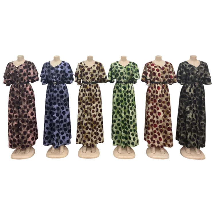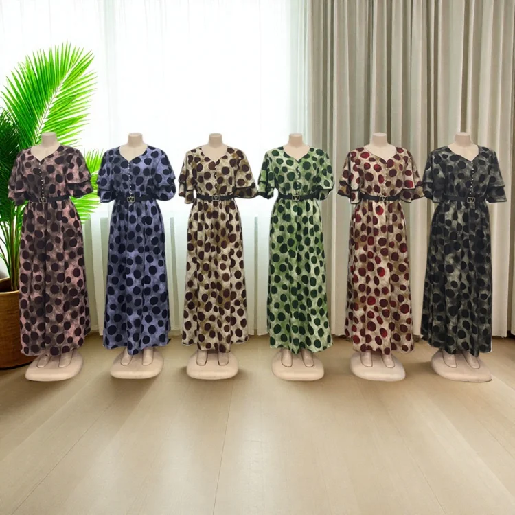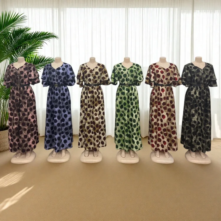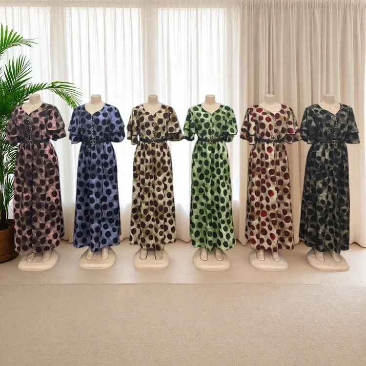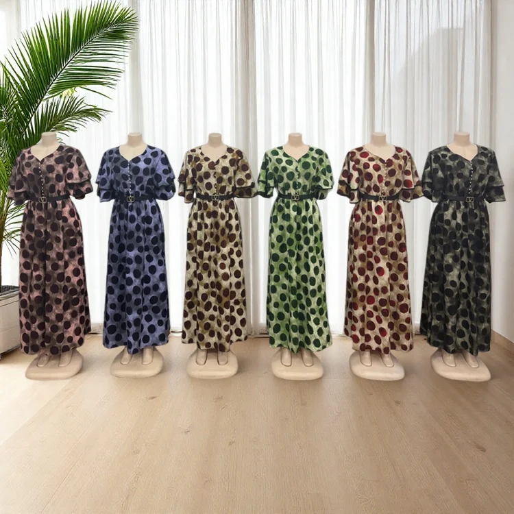 Wholesale New Ladies Muslim Robe Casual Large Size Short Sleeve V-neck Dress