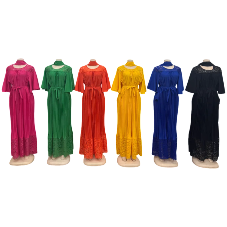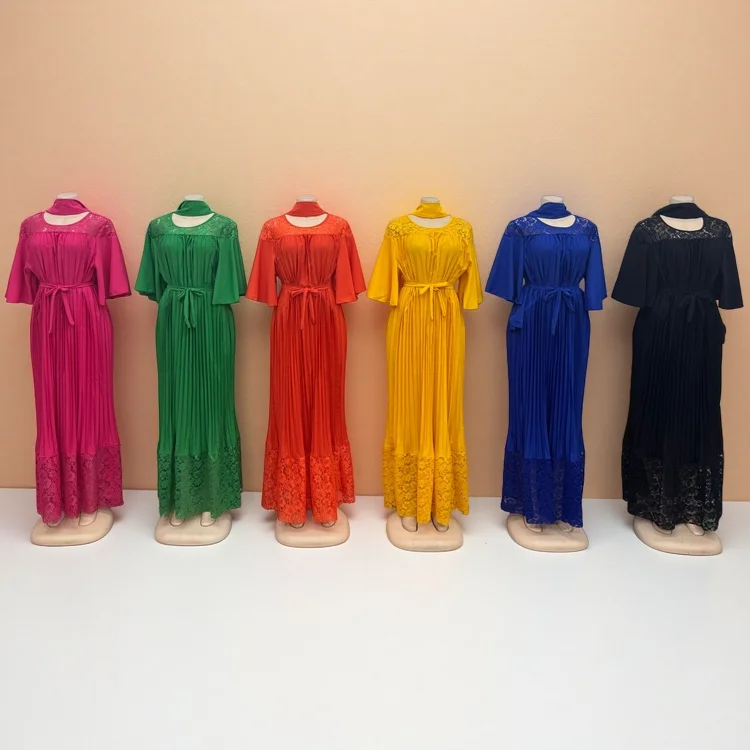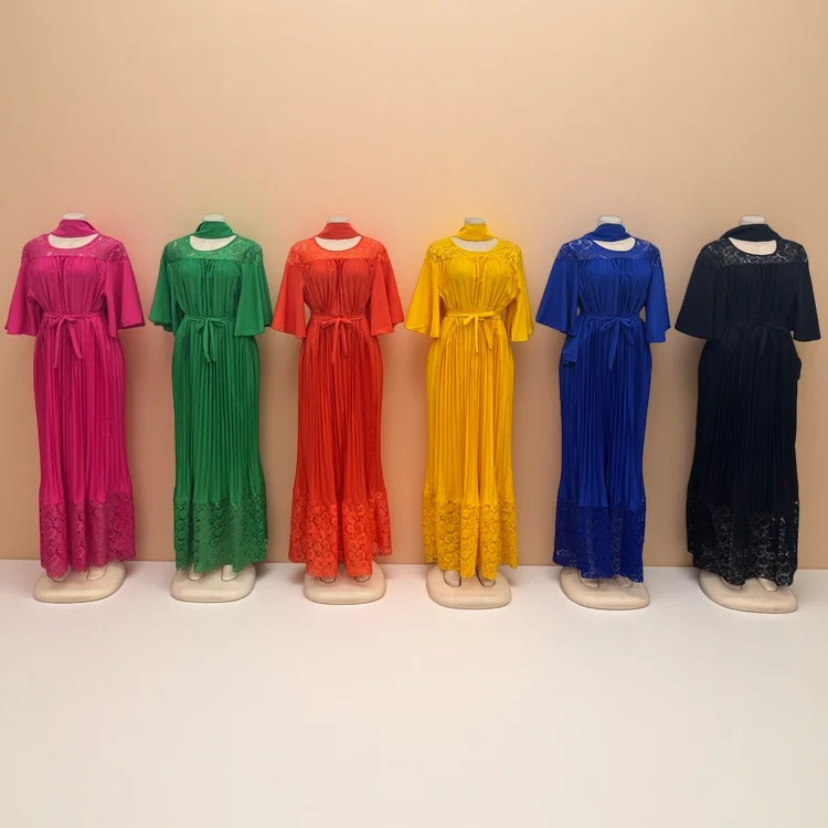 ZYHT 21541 Wholesale Crew Neck High Waist Casual Dresses Elegant Lace Velvet Mermaid Hem Ruched Long Sleeve Dresses for Women