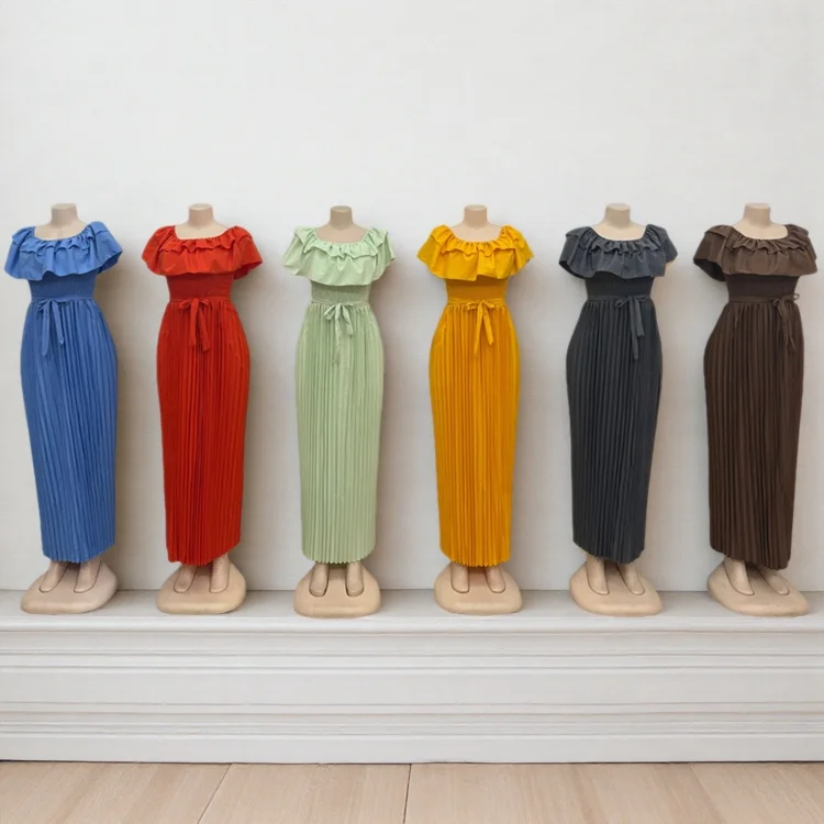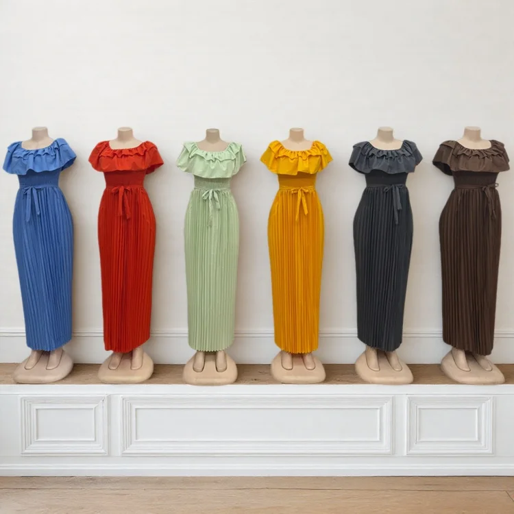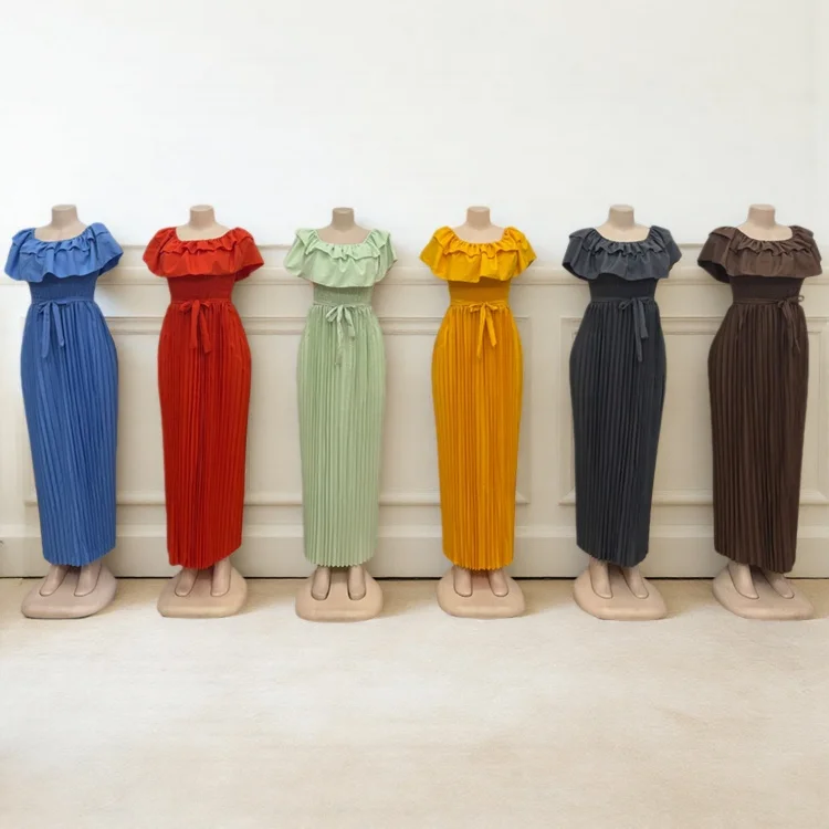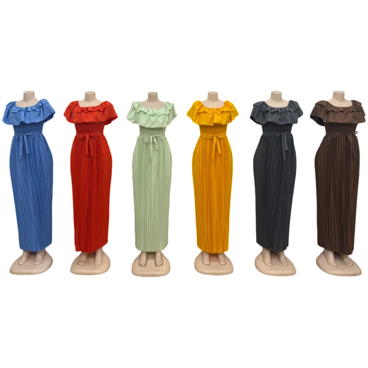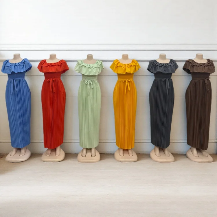 New Wholesale Summer Party Elegant Women Layered Short Sleeve Ruffled Pleated Fashion Dress
