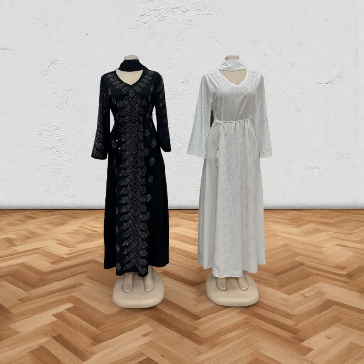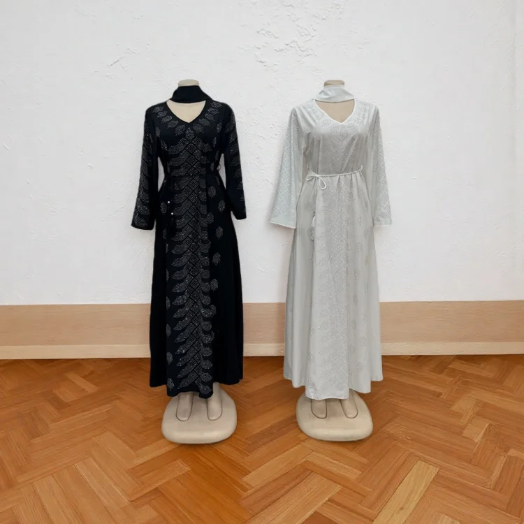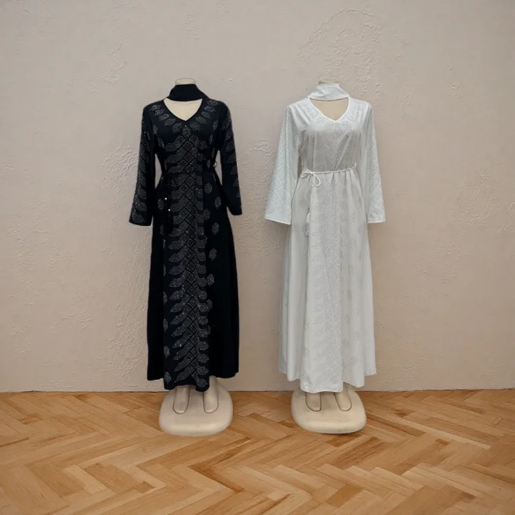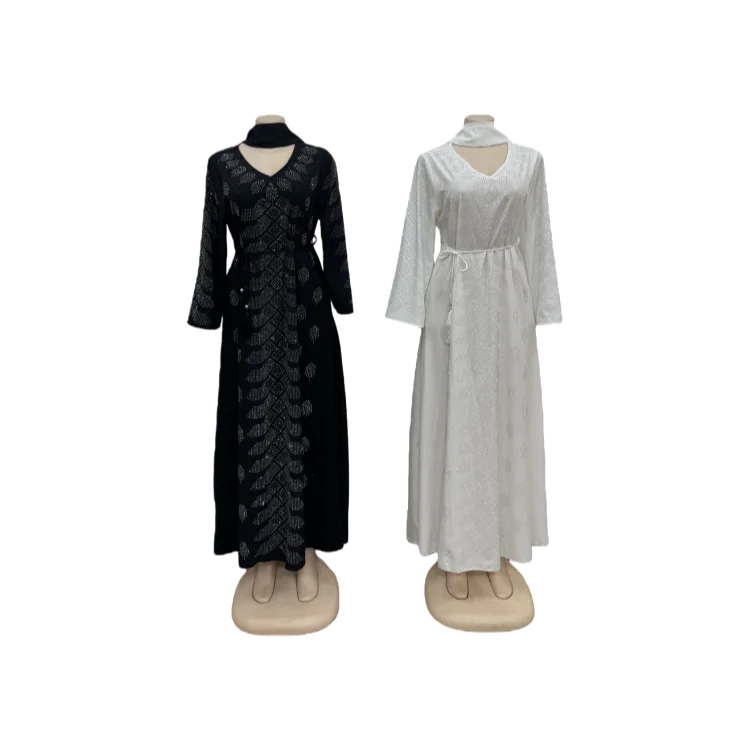 Wholesale Women Middle East Long Sleeve Abaya Muslim Robe with Diamond Belt Dress