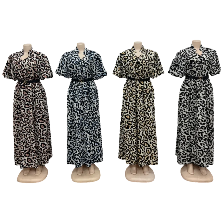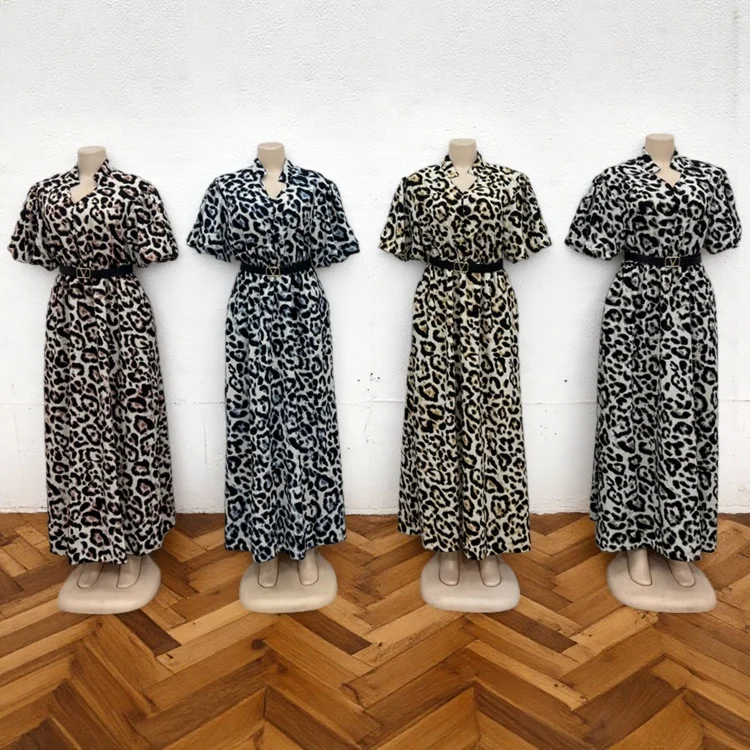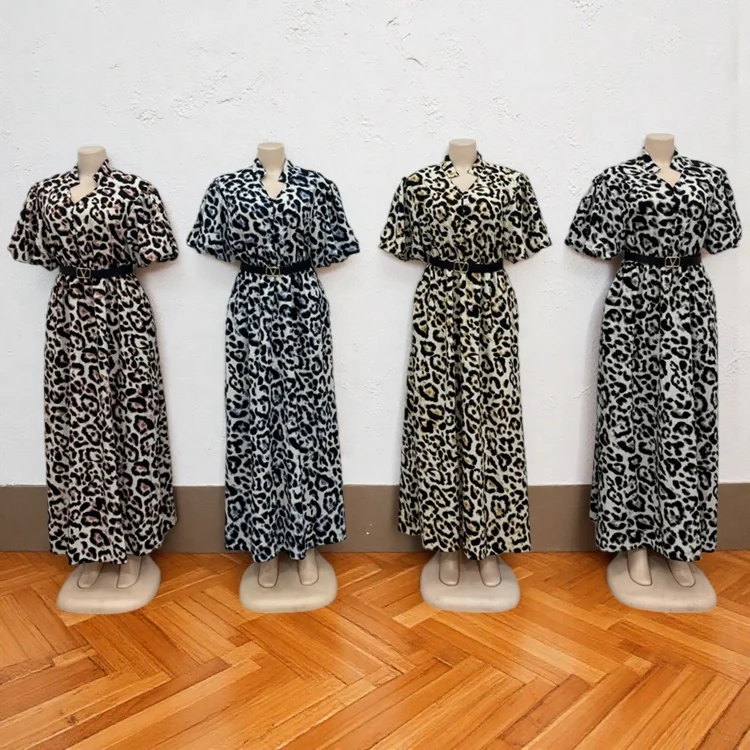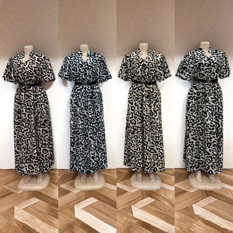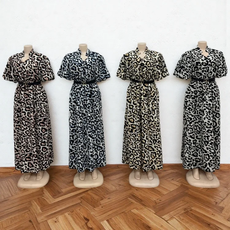 Autumn New Women's Retro Leopard Print Casual Short-sleeved V-neck Dress