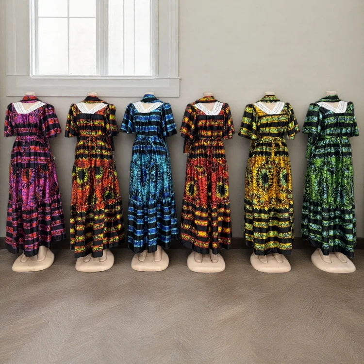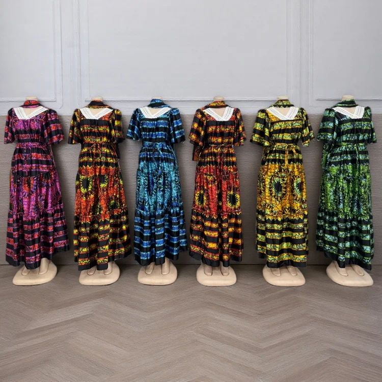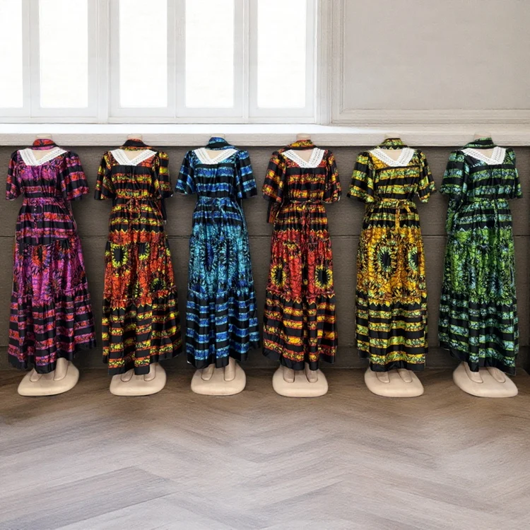 Wholesale New Summer Fashion Ladies Lace V-Neck Loose Casual Breathable Printed Dress