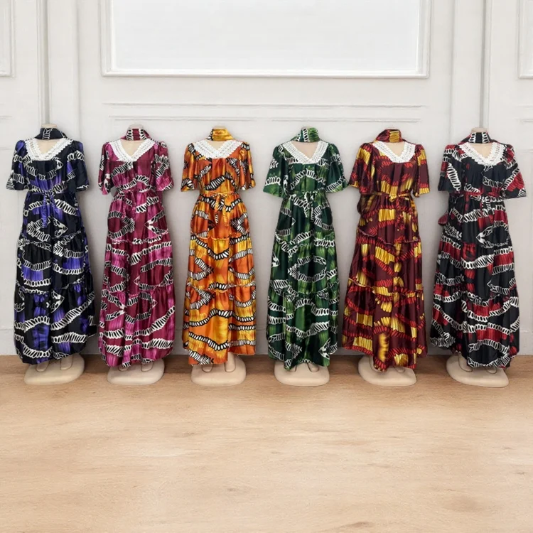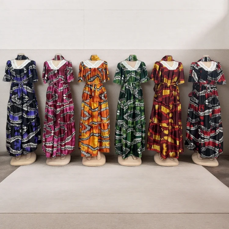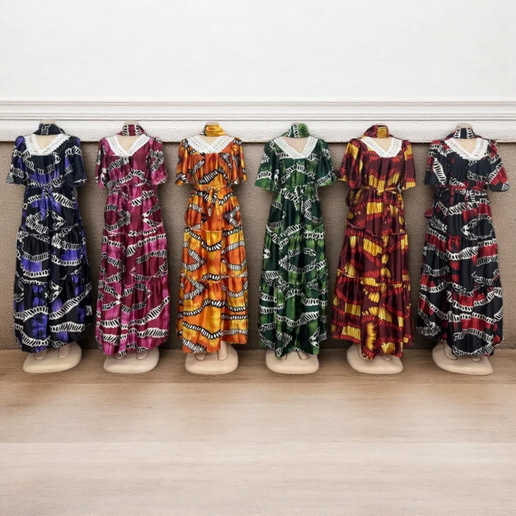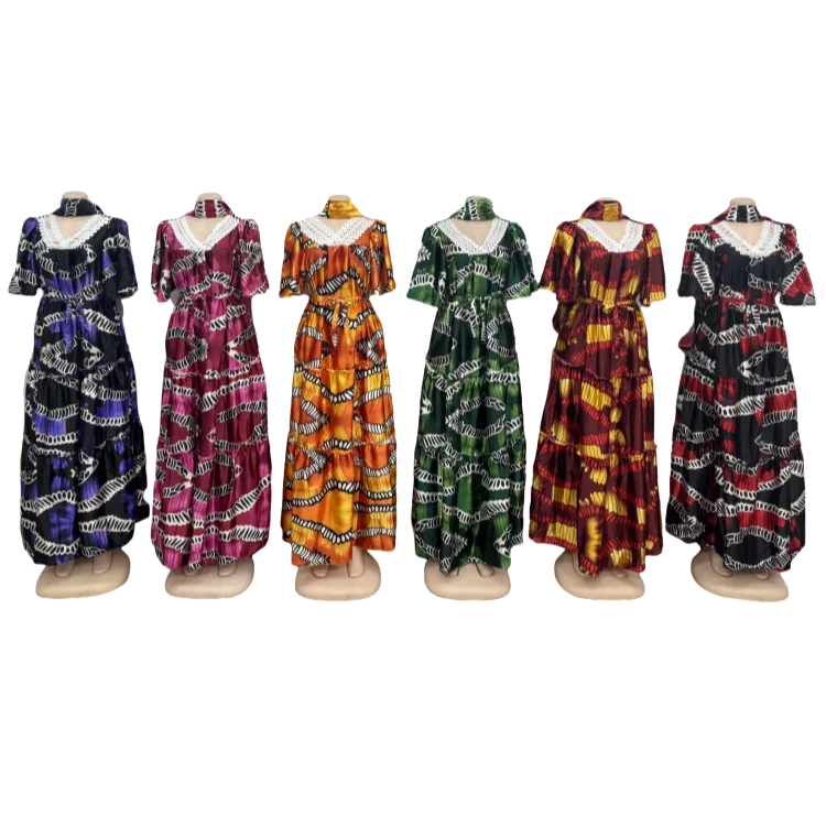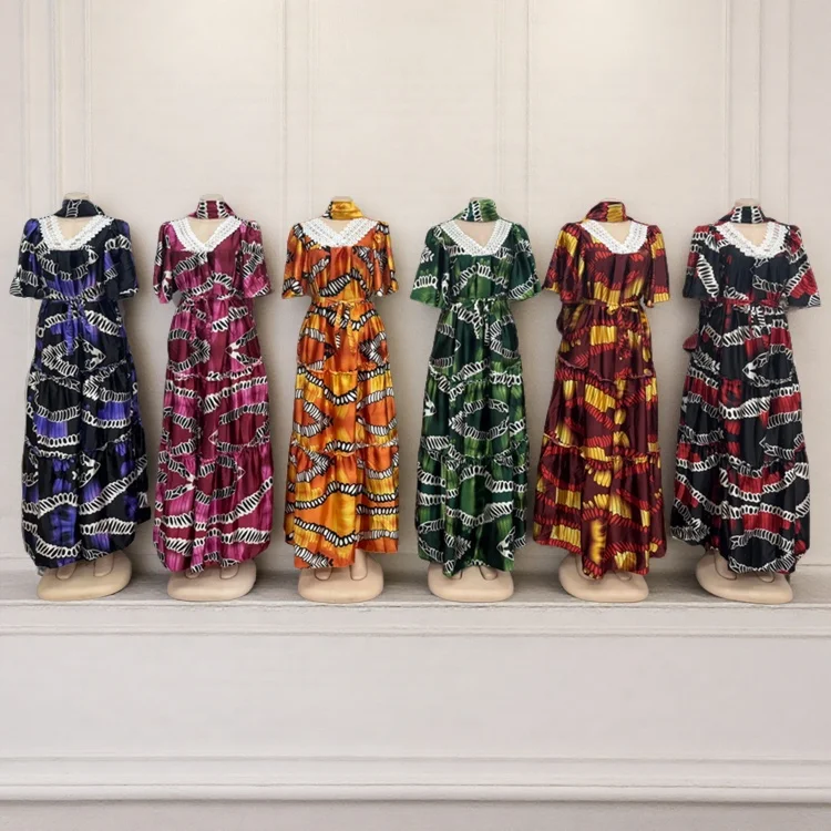 Wholesale Women's Loose Casual Summer Breathable Lace V-Neck Printed Muslim Dress