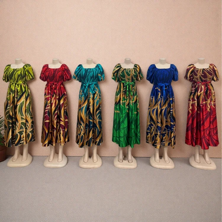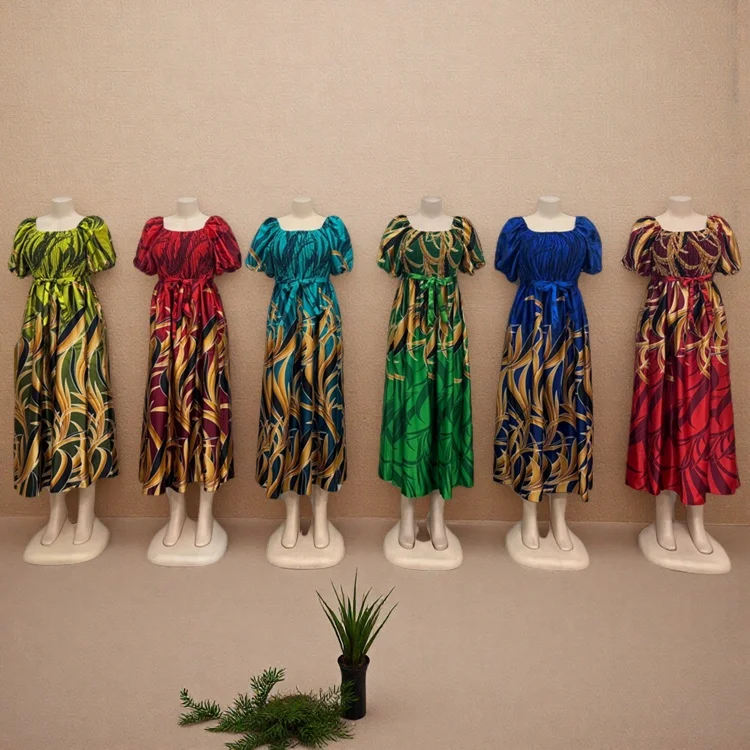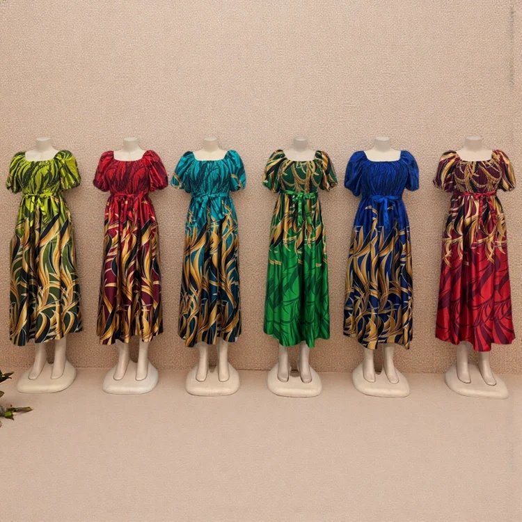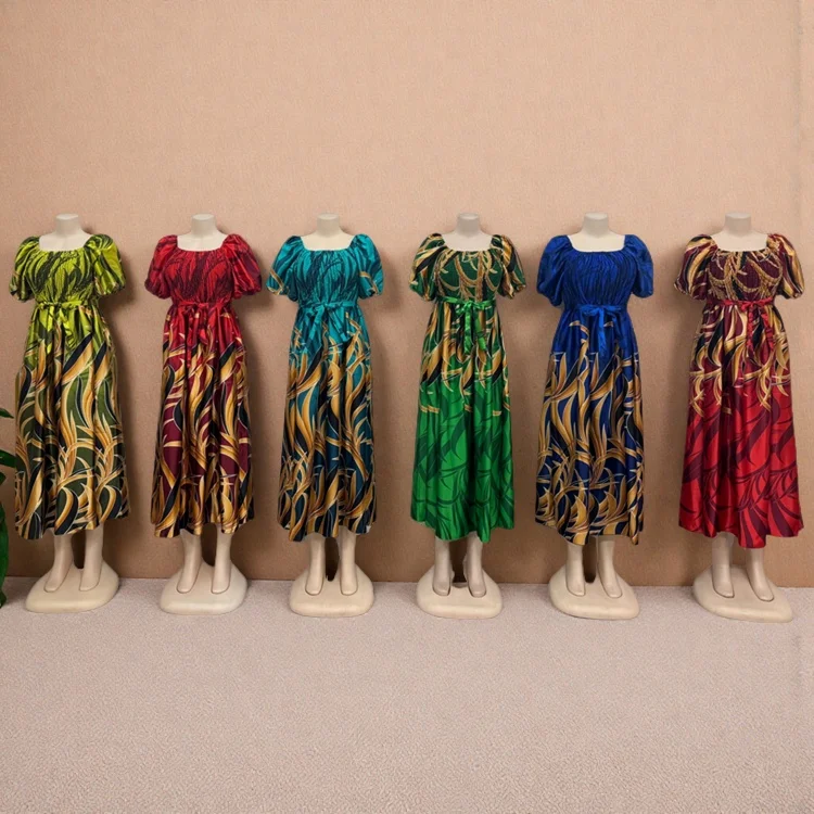 New Women African Clothing Large Size Muslim Printed Robe Square Collar Short Sleeve Dress