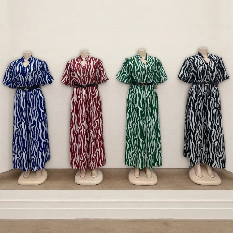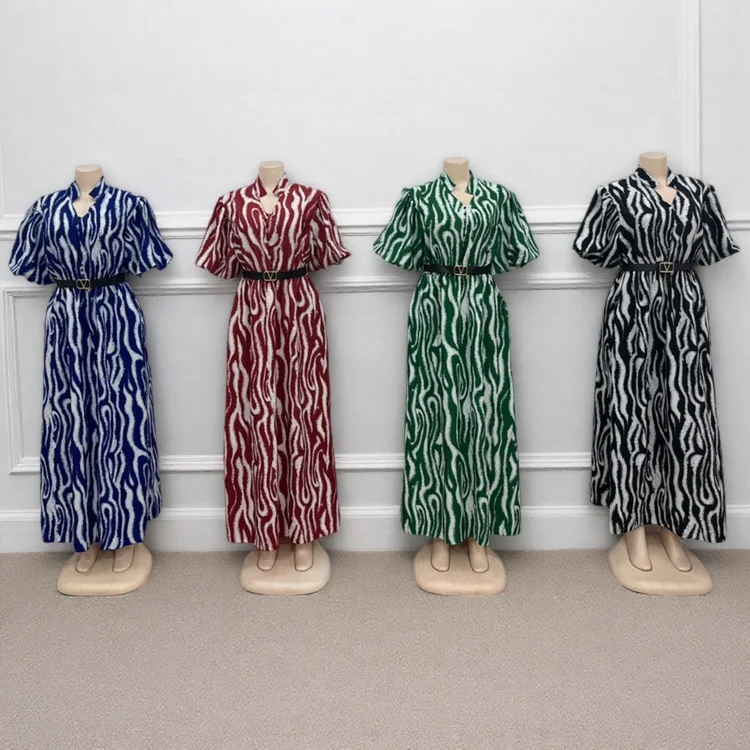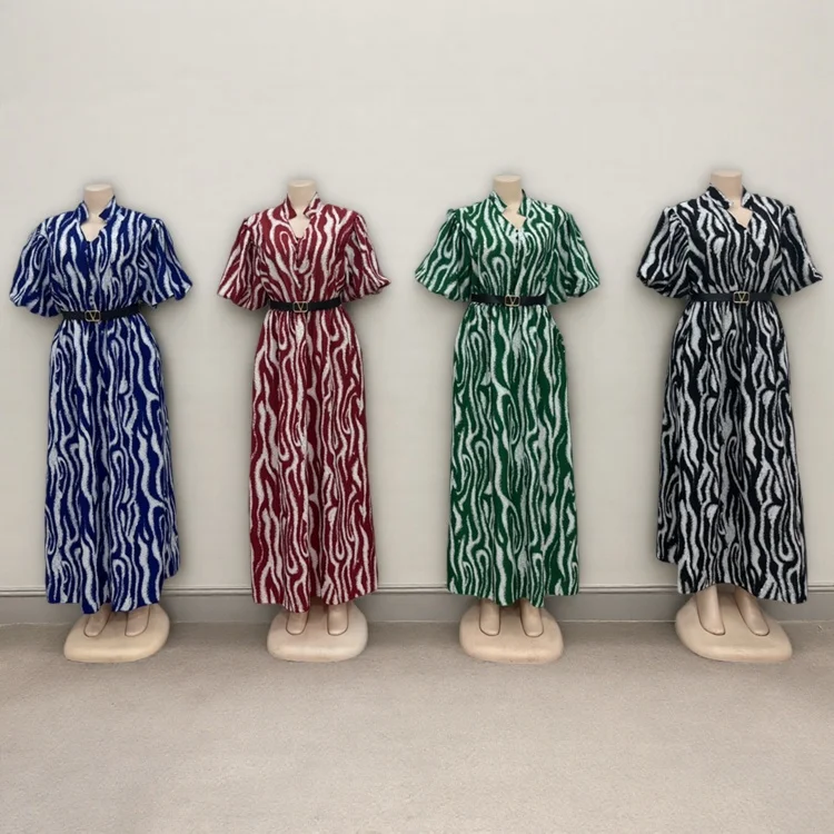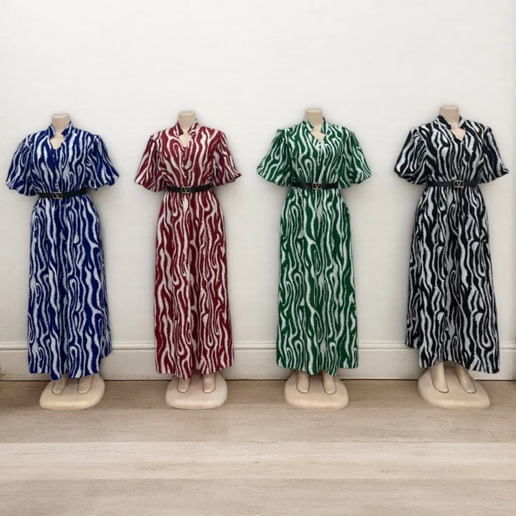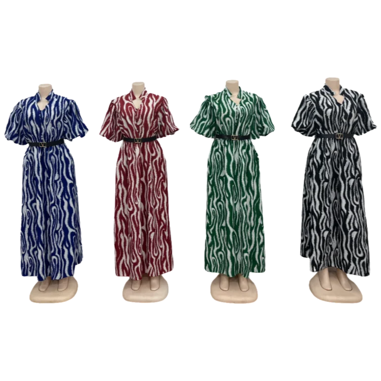 New Wholesale Loose Printed Fashion African Muslim Robe Women Lapel Short Sleeve Dress