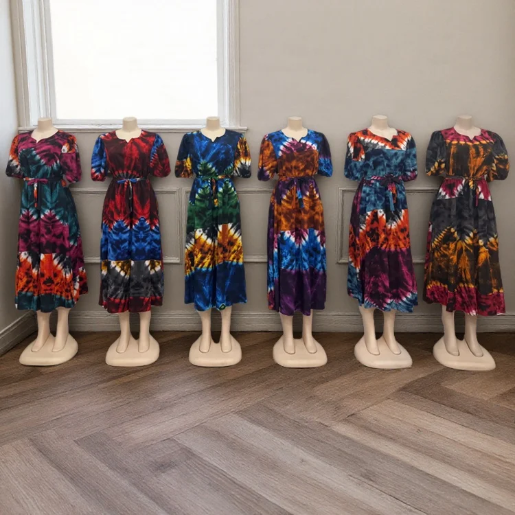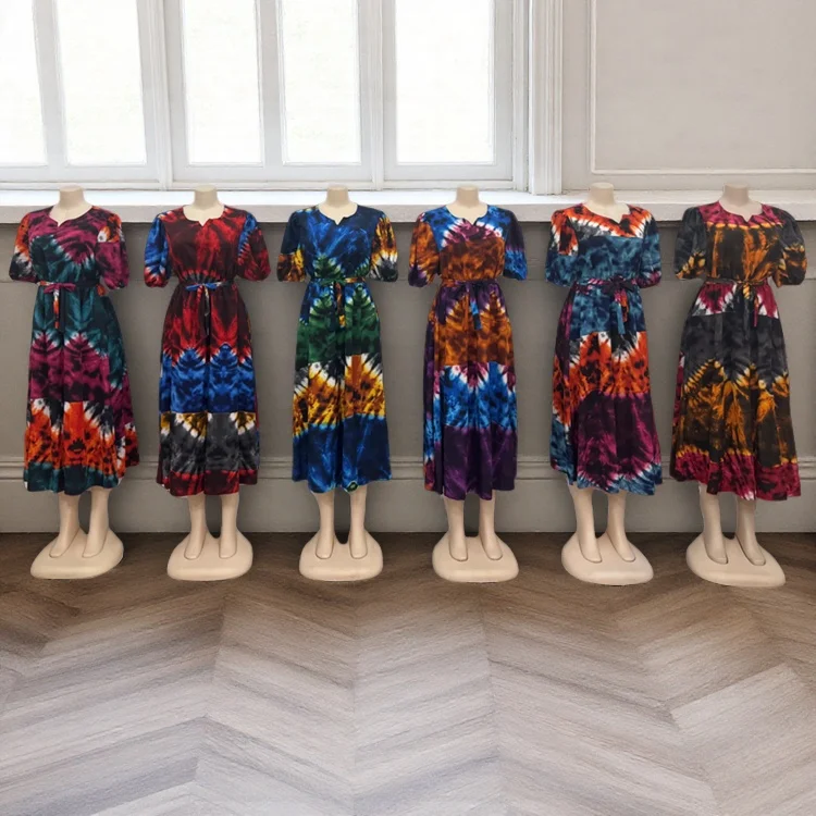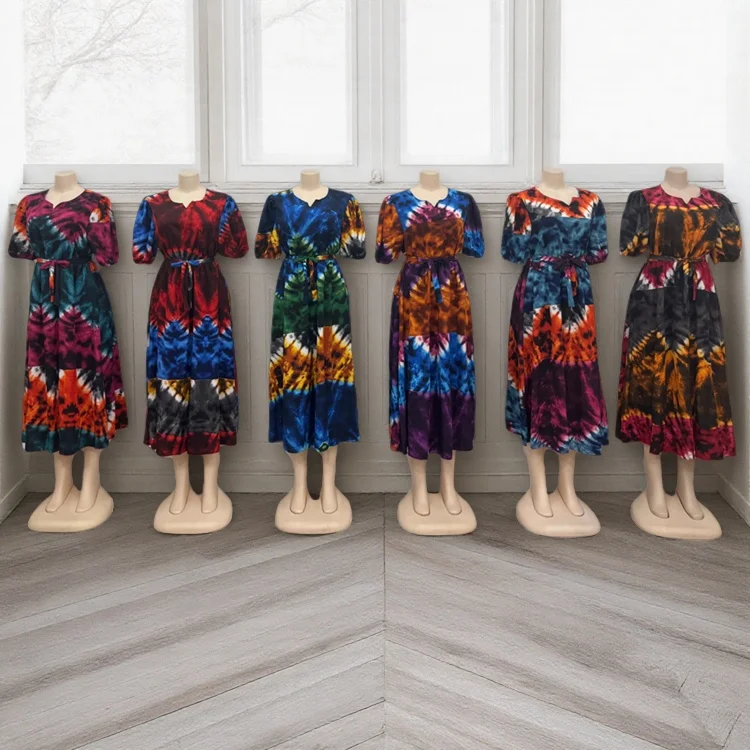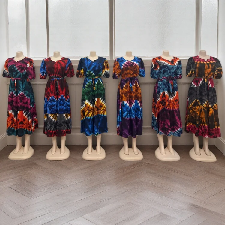 Wholesale New Fashion Large Size Loose Printed Muslim Short Sleeve Robe V-neck Dress