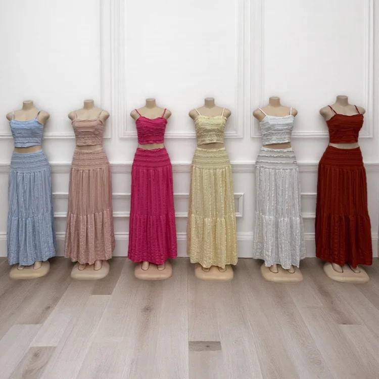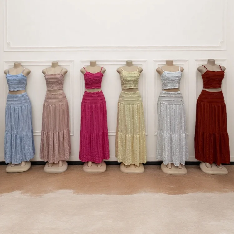 New Summer Fashion Floral Two-piece Women's Sleeveless Top High Waist Long Dress Sexy Dress