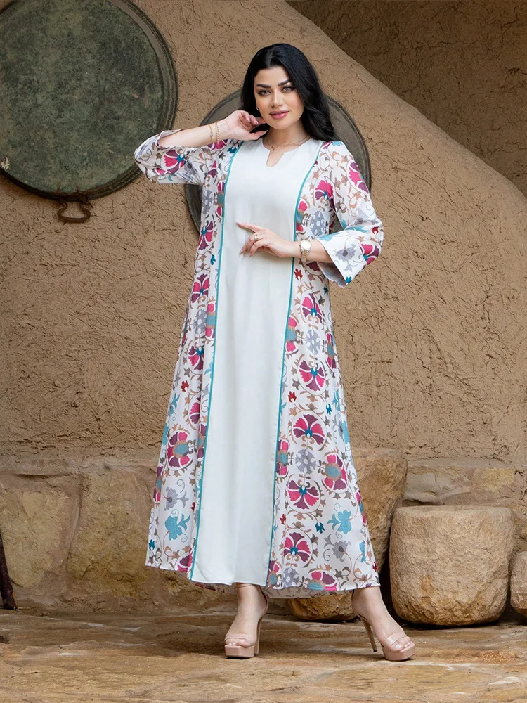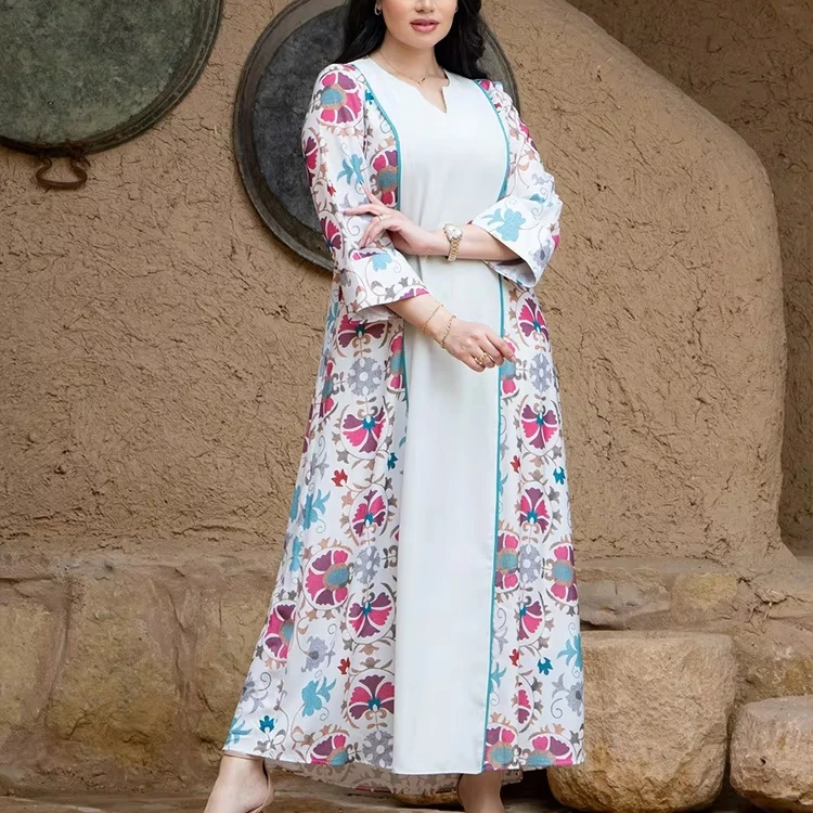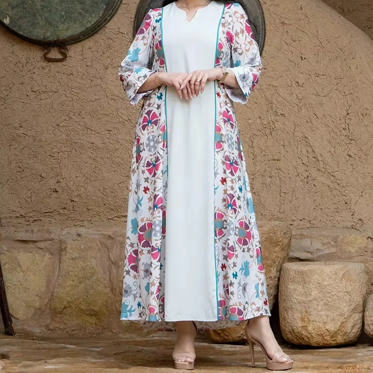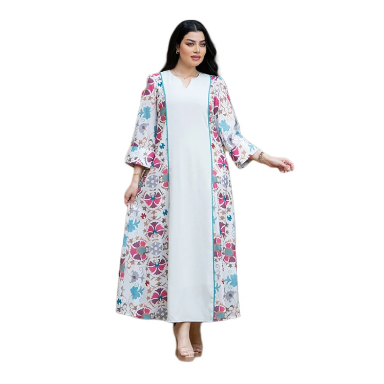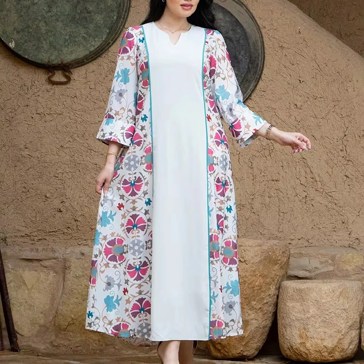Wholesale Middle East Fashion New Ladies Muslim Robe V-neck Printed Casual Dress