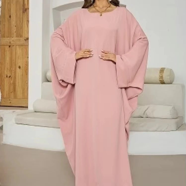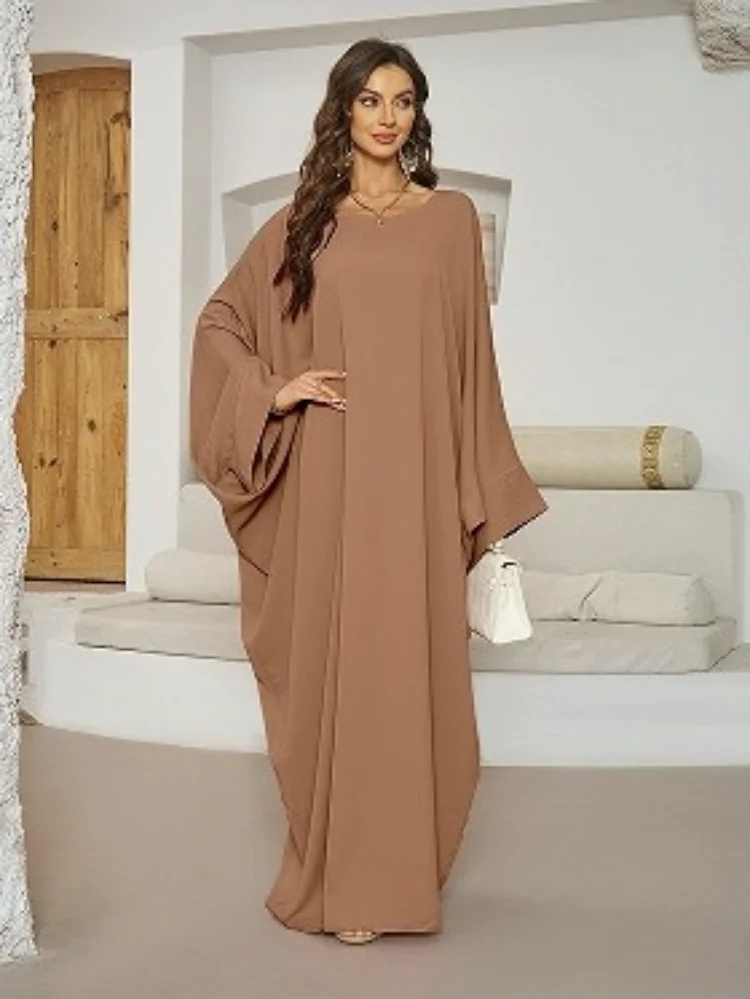Wholesale Middle East Muslim Simple Solid Color New Women Robe Round Neck Loose Dress