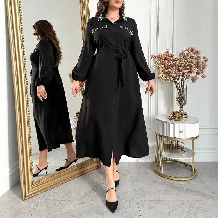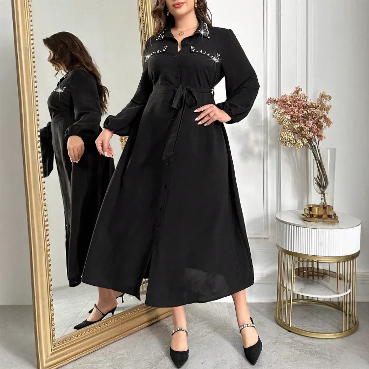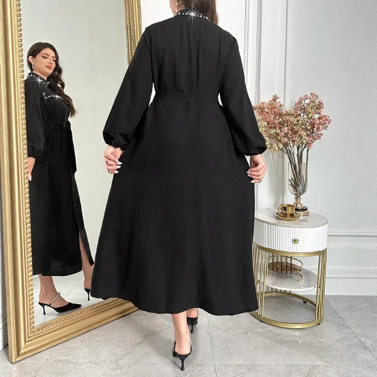 Spring and Autumn Women's New Tight Waist Slimming Interior French Black Long Lapel Dress