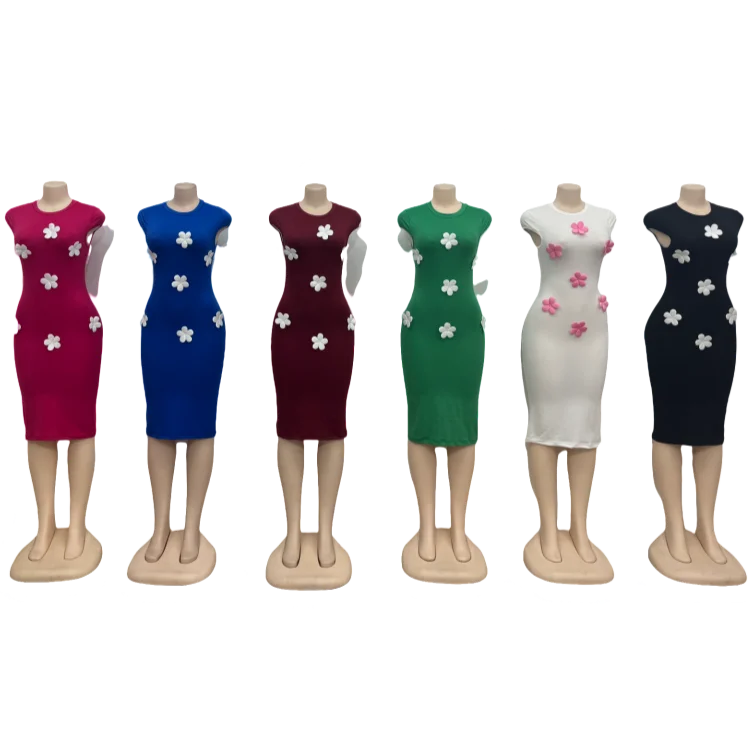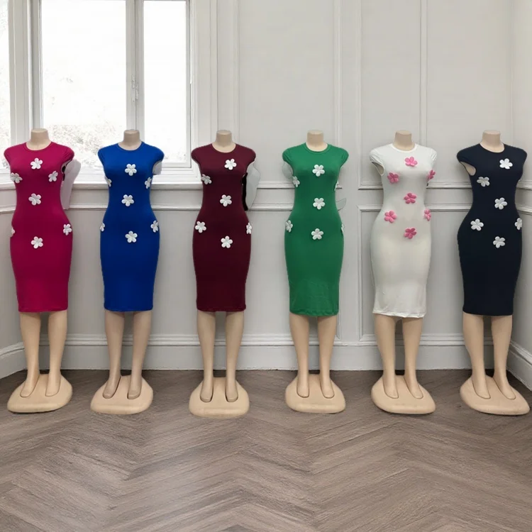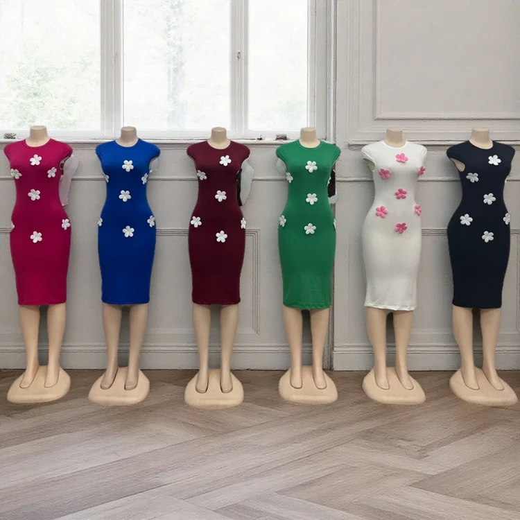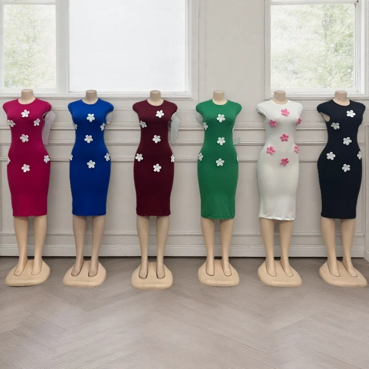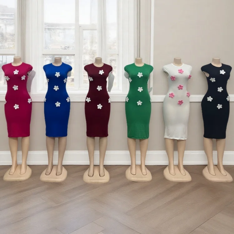Summer Fashion Elegant Women French Romantic Party Casual 3d Decal Sleeveless Slim Fit Dress