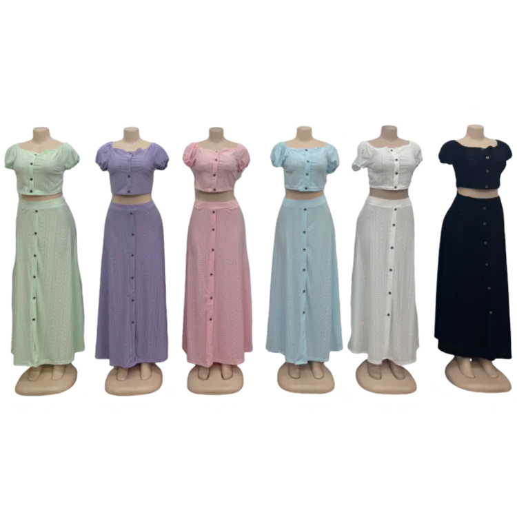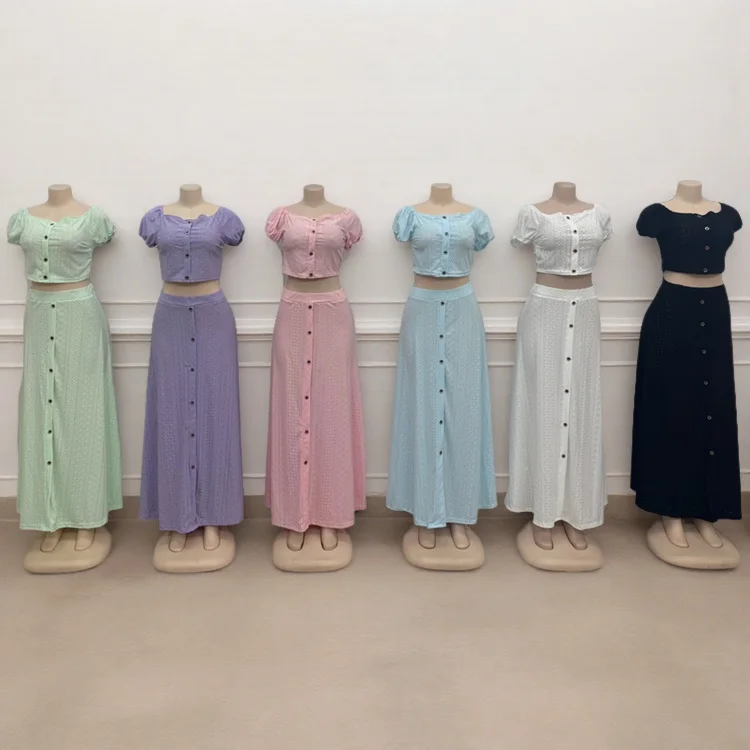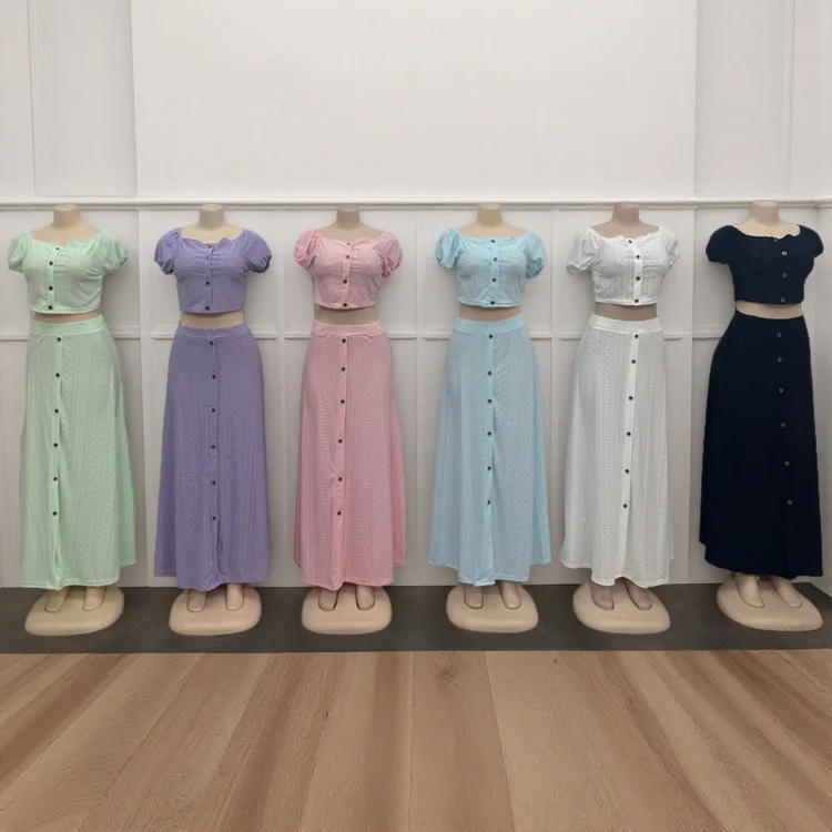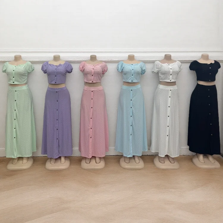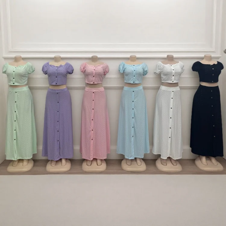 Wholesale New Summer 2-piece Knit Top and High Waist Skirt French Women's Casual Suit