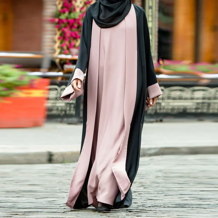Women Middle Eastern Evening Gown Loose Muslim Robe High Waist Lace-up Long Sleeve Dress