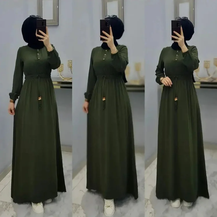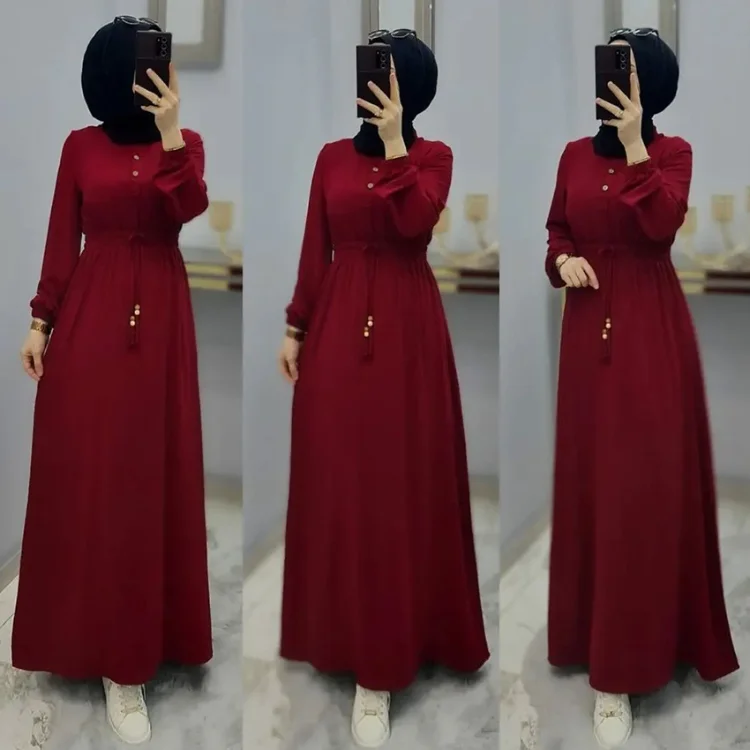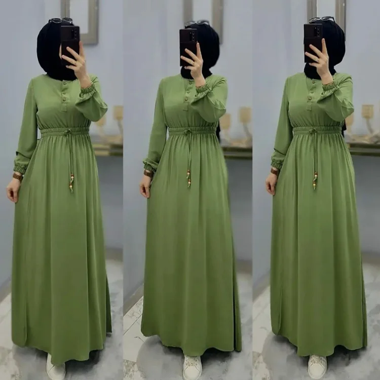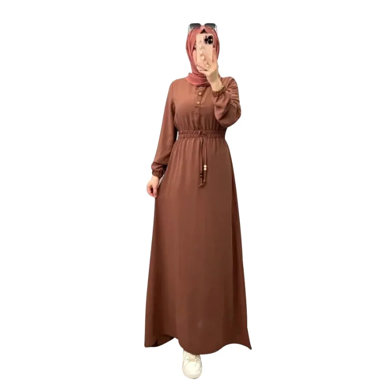 Wholesale New Middle East Solid Color Muslim Elegant Slim-fit Air Loose Tight Waist Dress