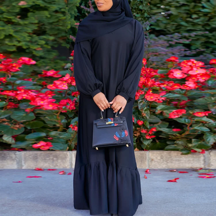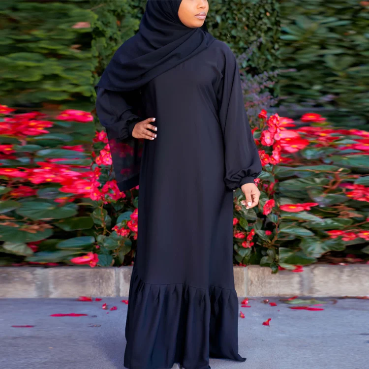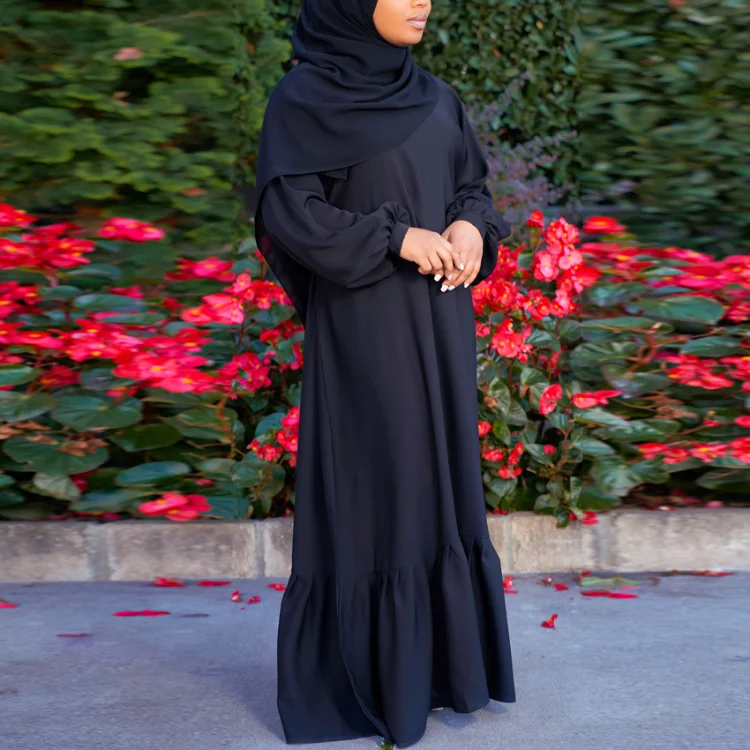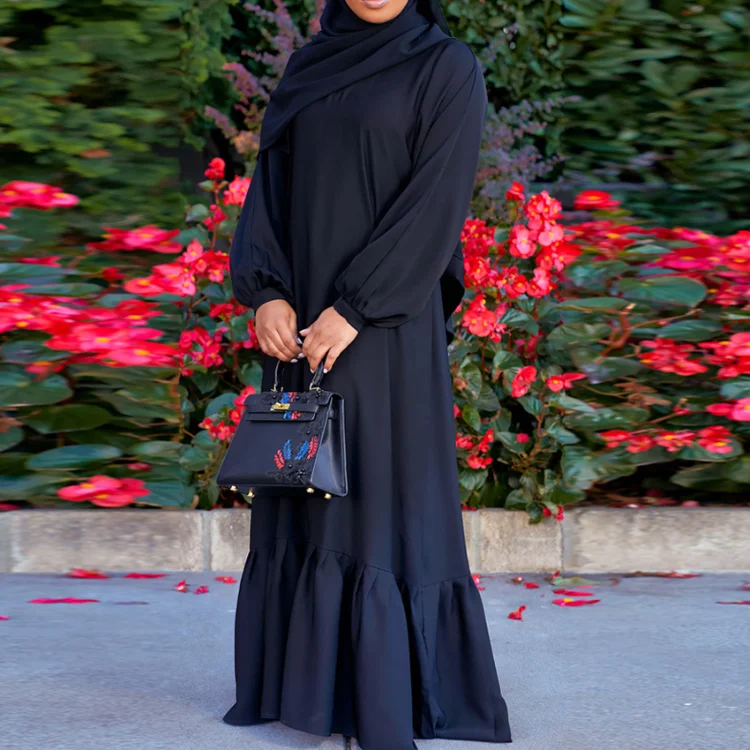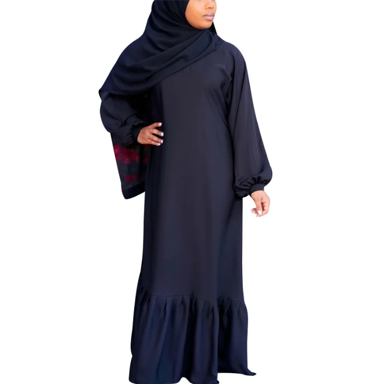New Middle Eastern Muslim Robe Arabian Elegant Hem Ruffled Solid Color Long Sleeve Dress