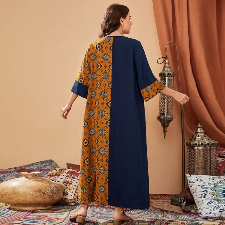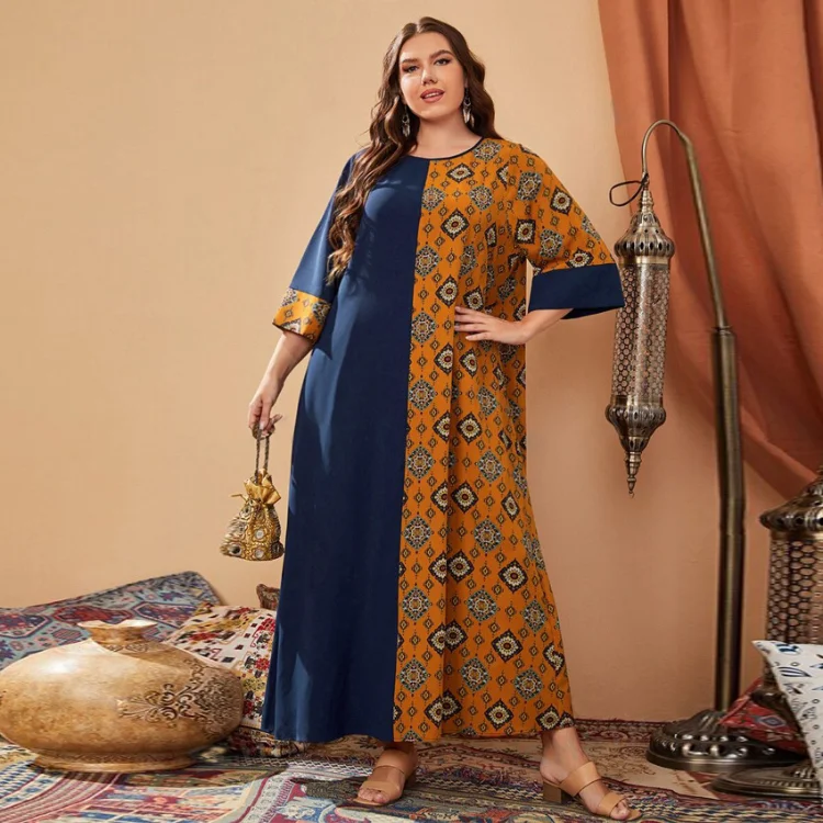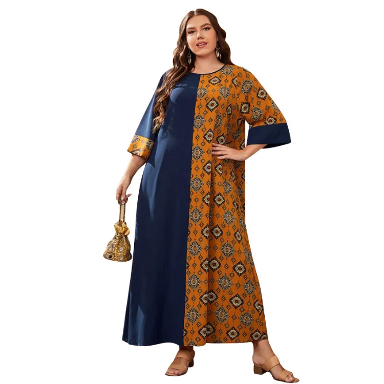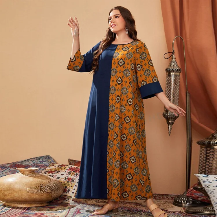 Wholesale New Middle Eastern Muslim Robe Fashion Loose Printing Elegant High Waist A- Letter Dress