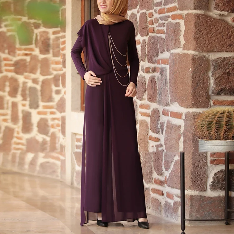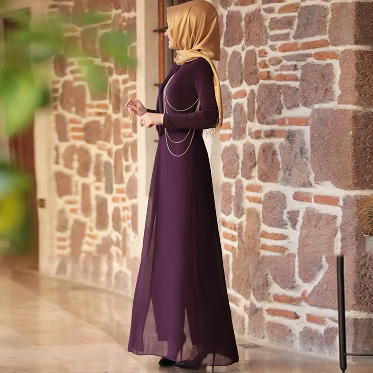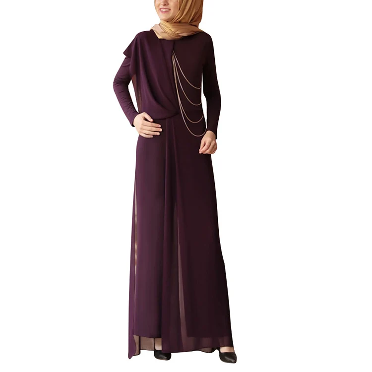 Middle Eastern Robe Women Abaya Muslim Slim Fit Long Elegant Long Sleeve Belt Fashion Dress