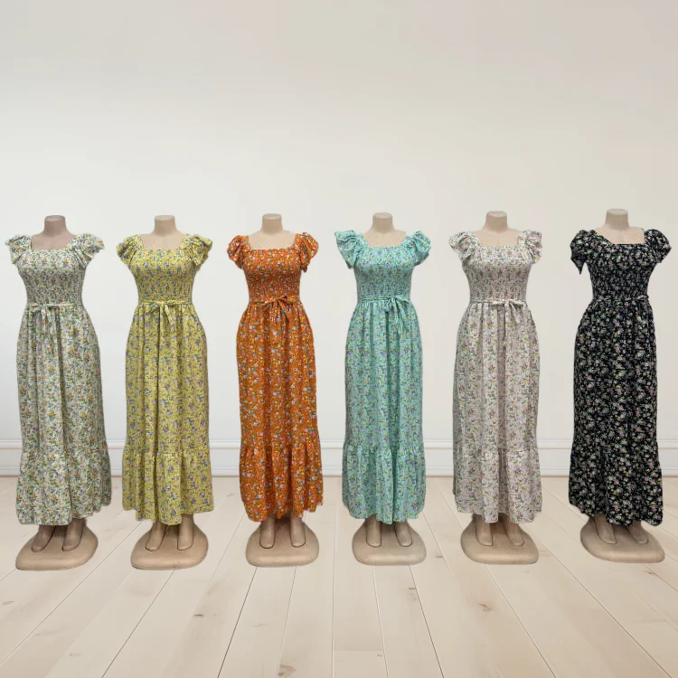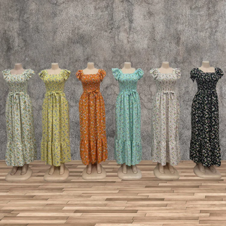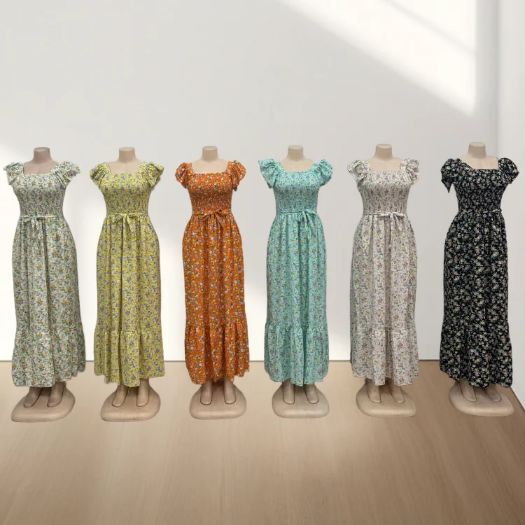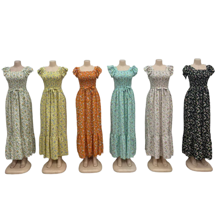 Spring and Summer Women's Casual Fashion Short Sleeve Pleated A- Line Skirt Printed Lace-up Dress