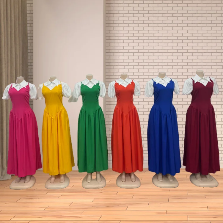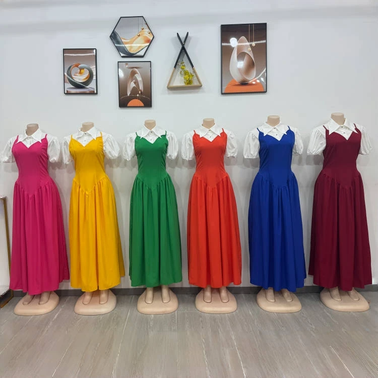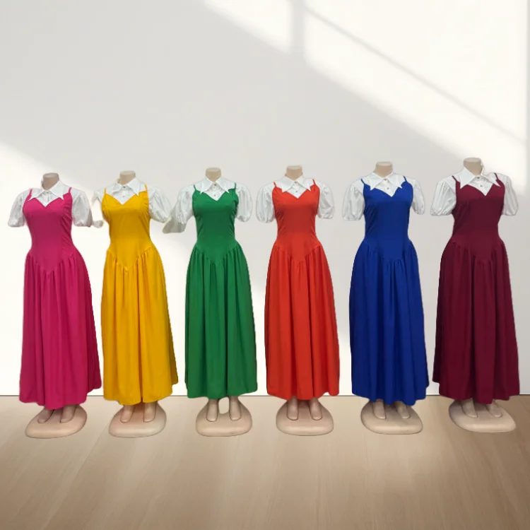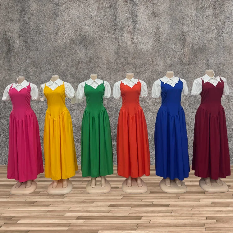 Women's Autumn Elegant Elegant Puff Sleeve Shirt Collar High Waist Slimming Stitching Fashion New Dress