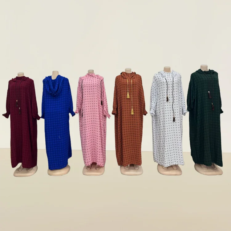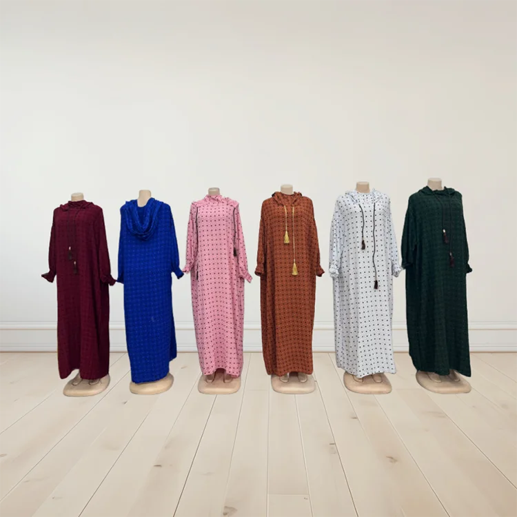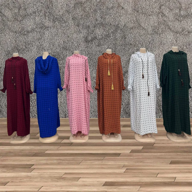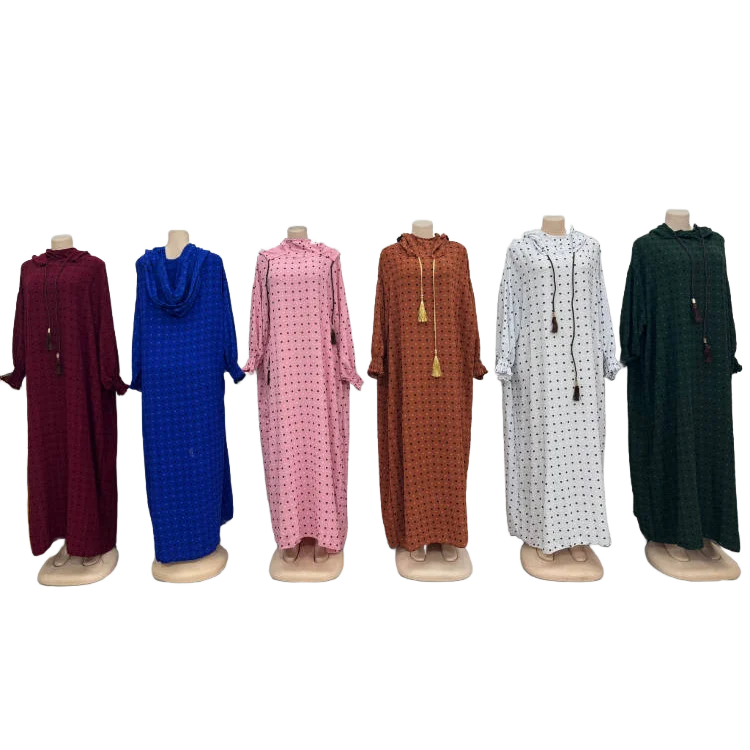 Abaya Middle East Muslim Robe Embroidered Nightgown Loose Hooded Rope Long Sleeve Dress