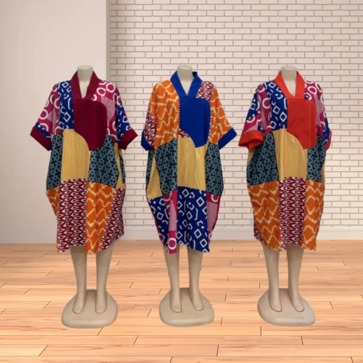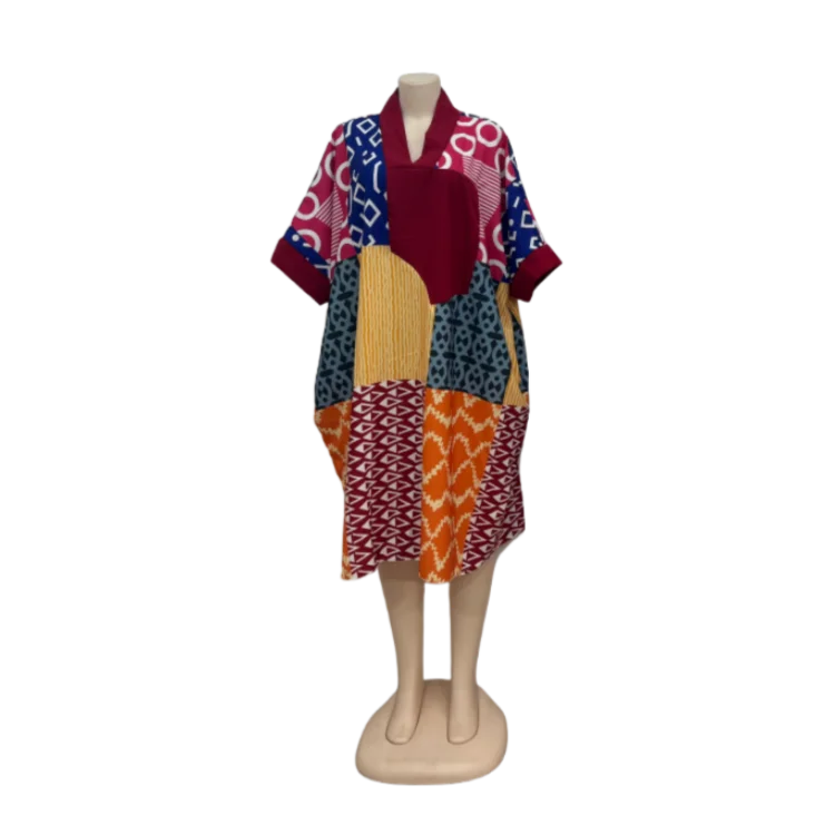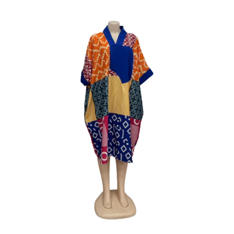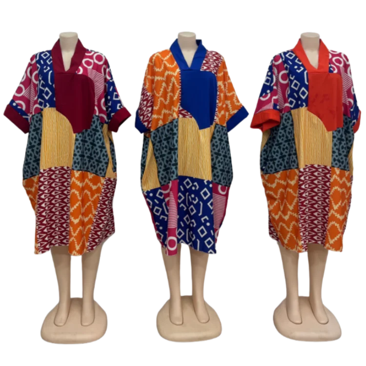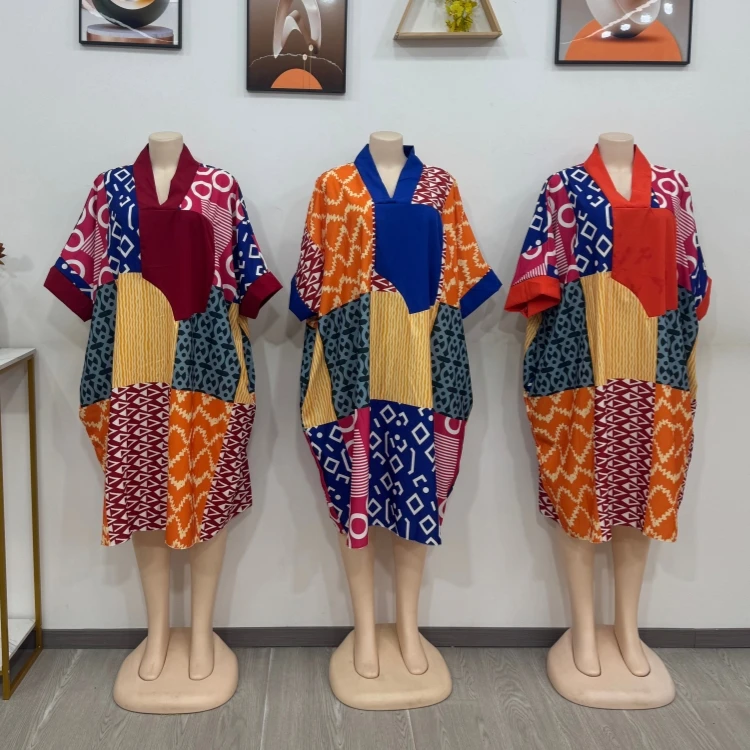 New African Women's Summer Fashion Printed Patchwork Kaftan Plus Size Casual Loose Dress