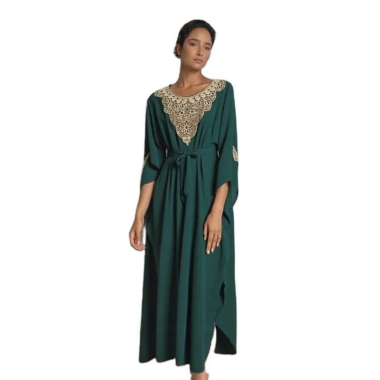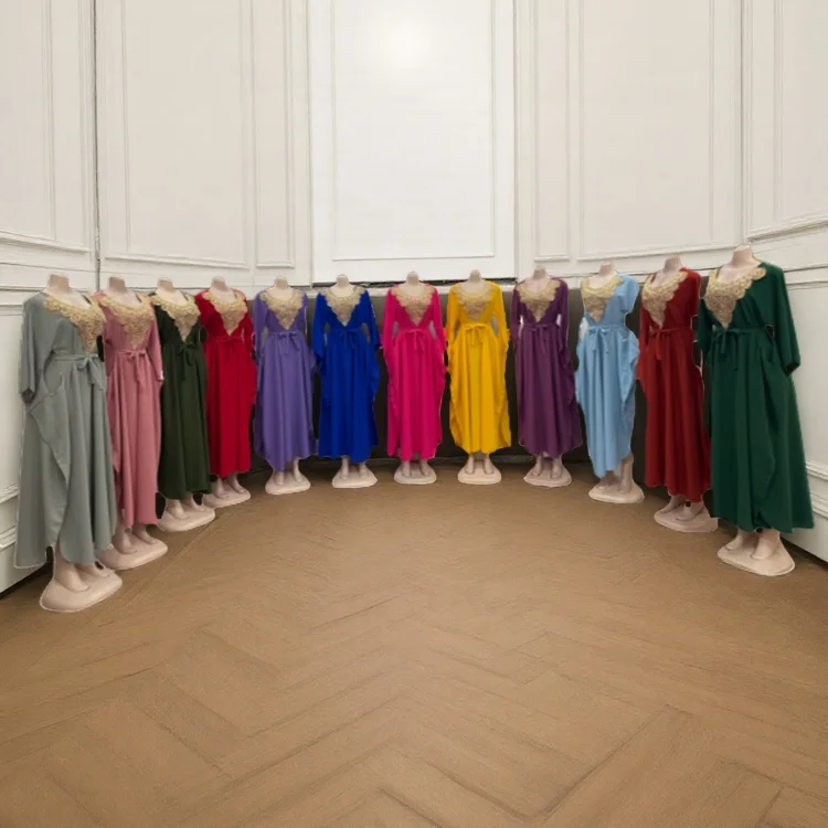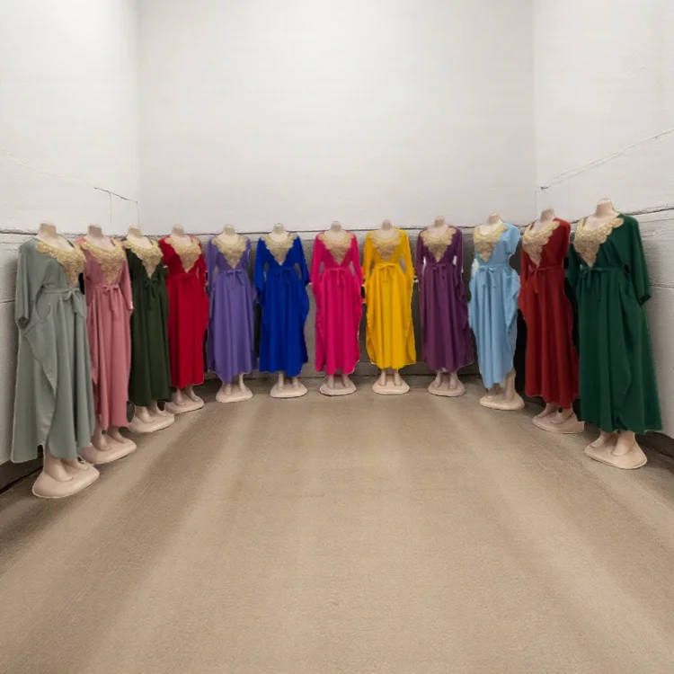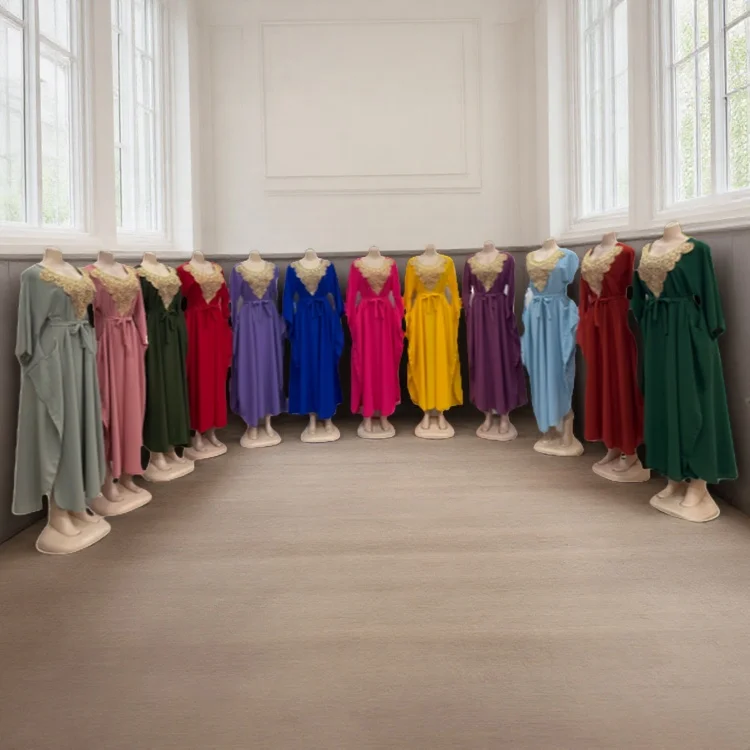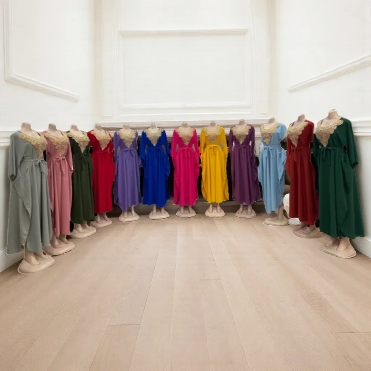 Wholesale Fashion Summer Casual Arab Party Ball Dress Lace-up Long Sleeve Crewneck Dress