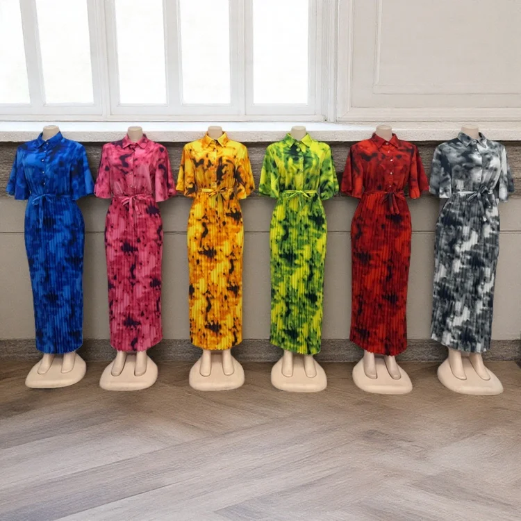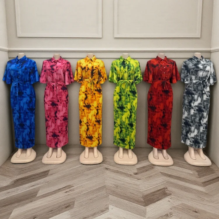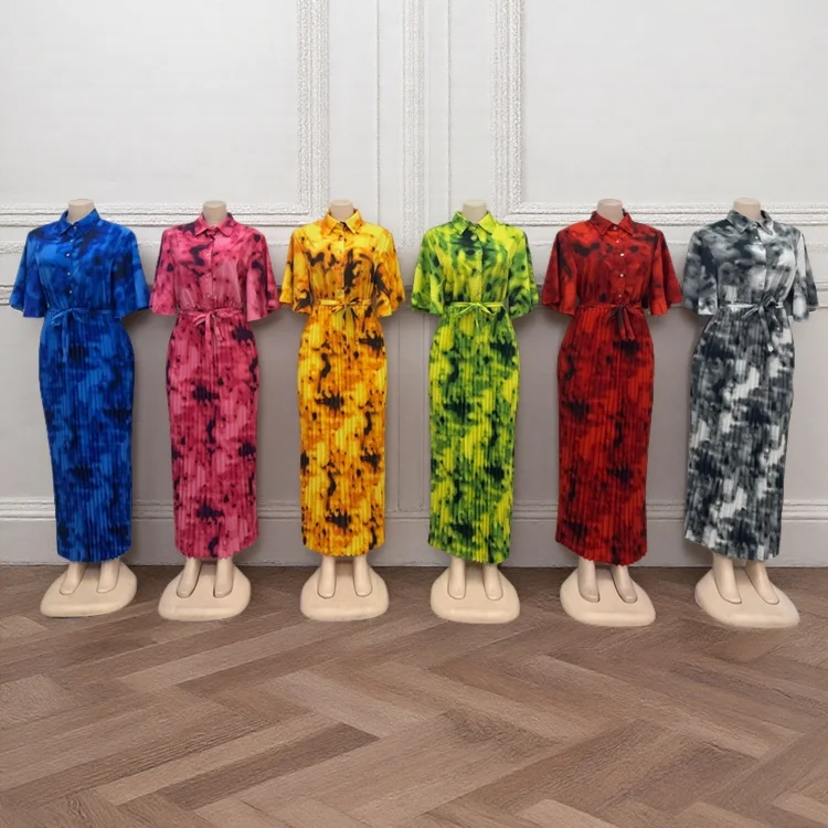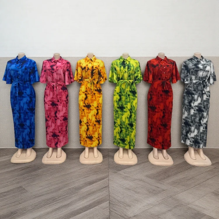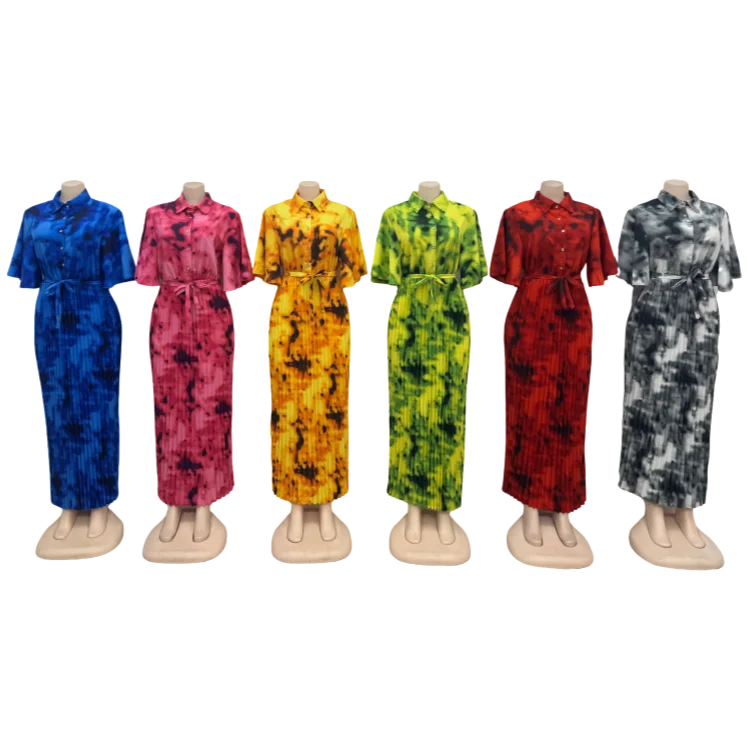 New Fashion Casual Summer Dyeing African Print Women's Loose Button Lel Short Sleeve Dress