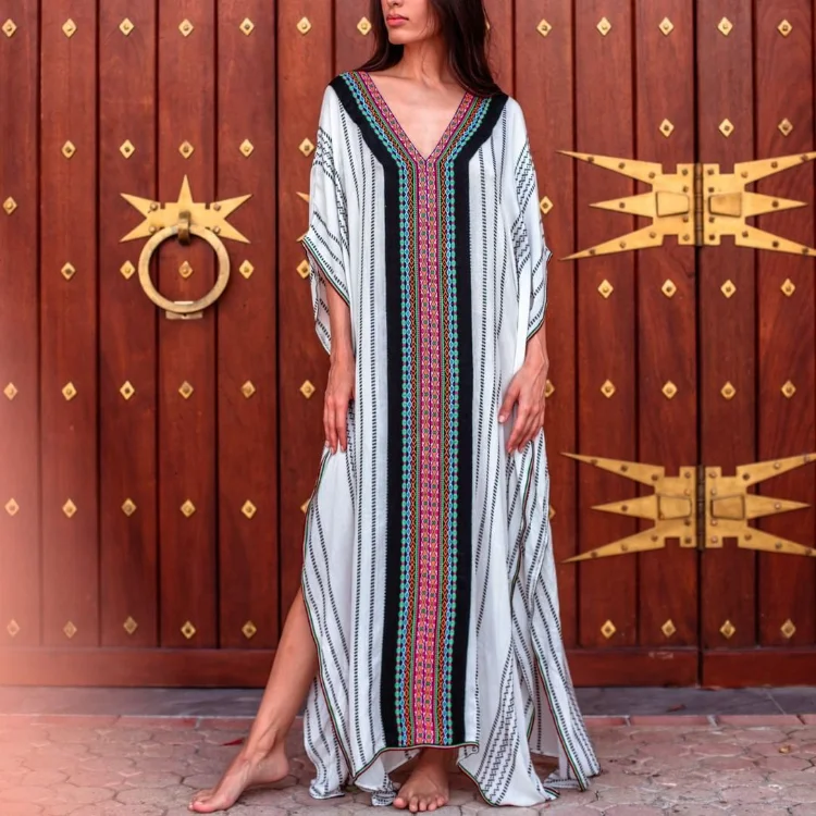 Wholesale New National Style Positioning Printing Holiday Gown Sunscreen Shirt Fashion Dress